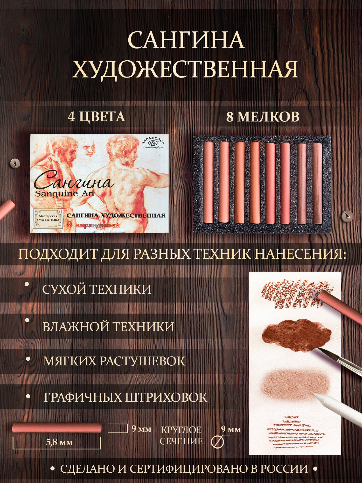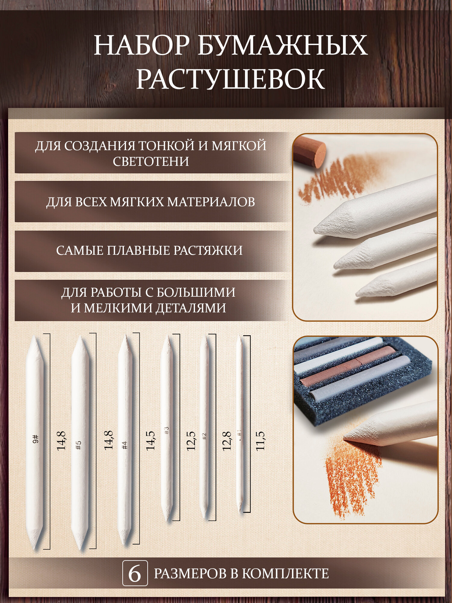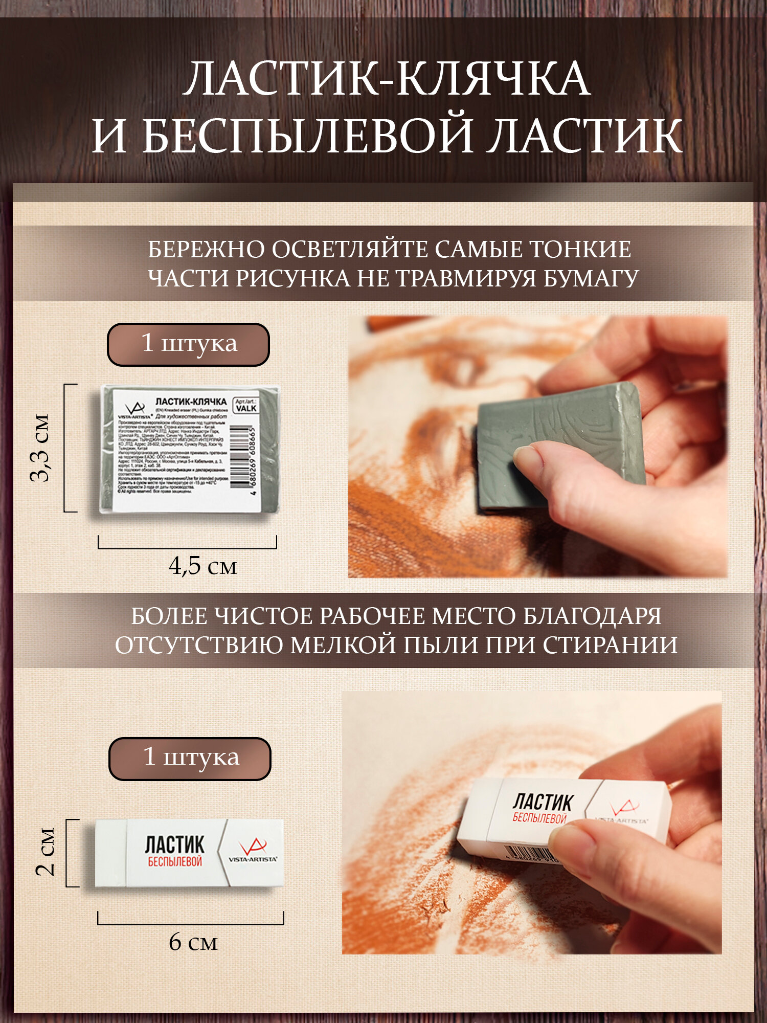 Набор пастели художественной сангина, сепия, соус, растушевки бумажные, ластик-клячка, ластик беспылевой интересное: