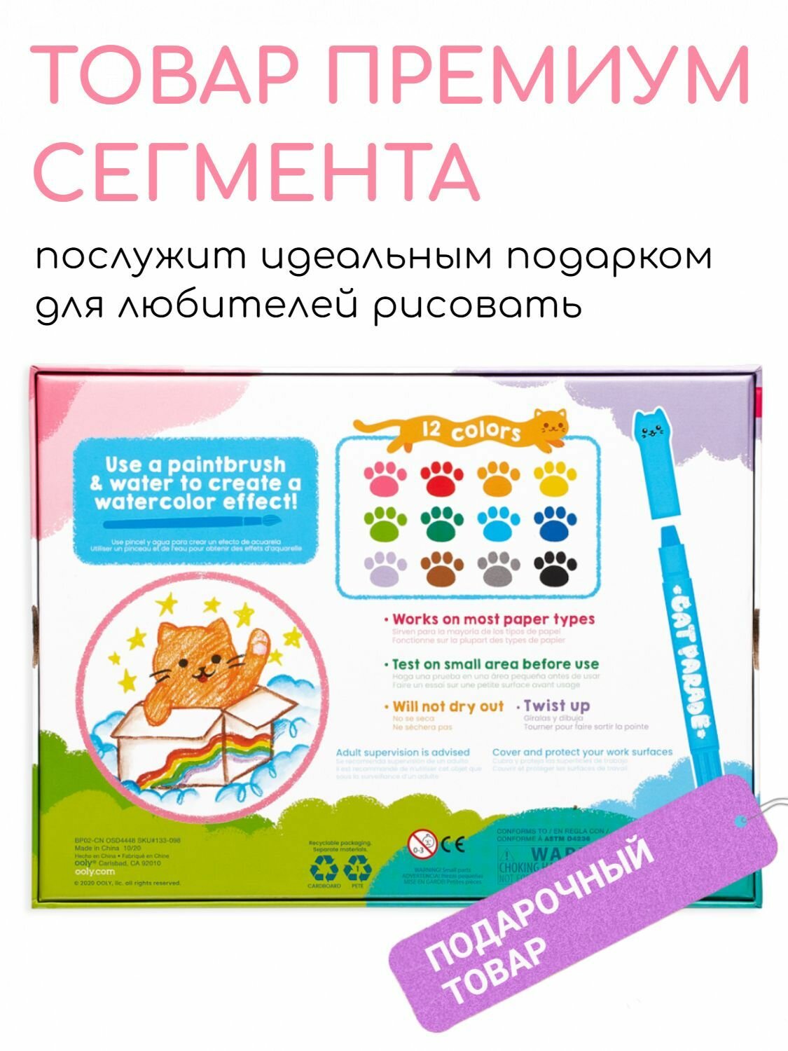 Набор механических цветных акварельных гелевых мелков OOLY Котята; 12 цветов интересное: