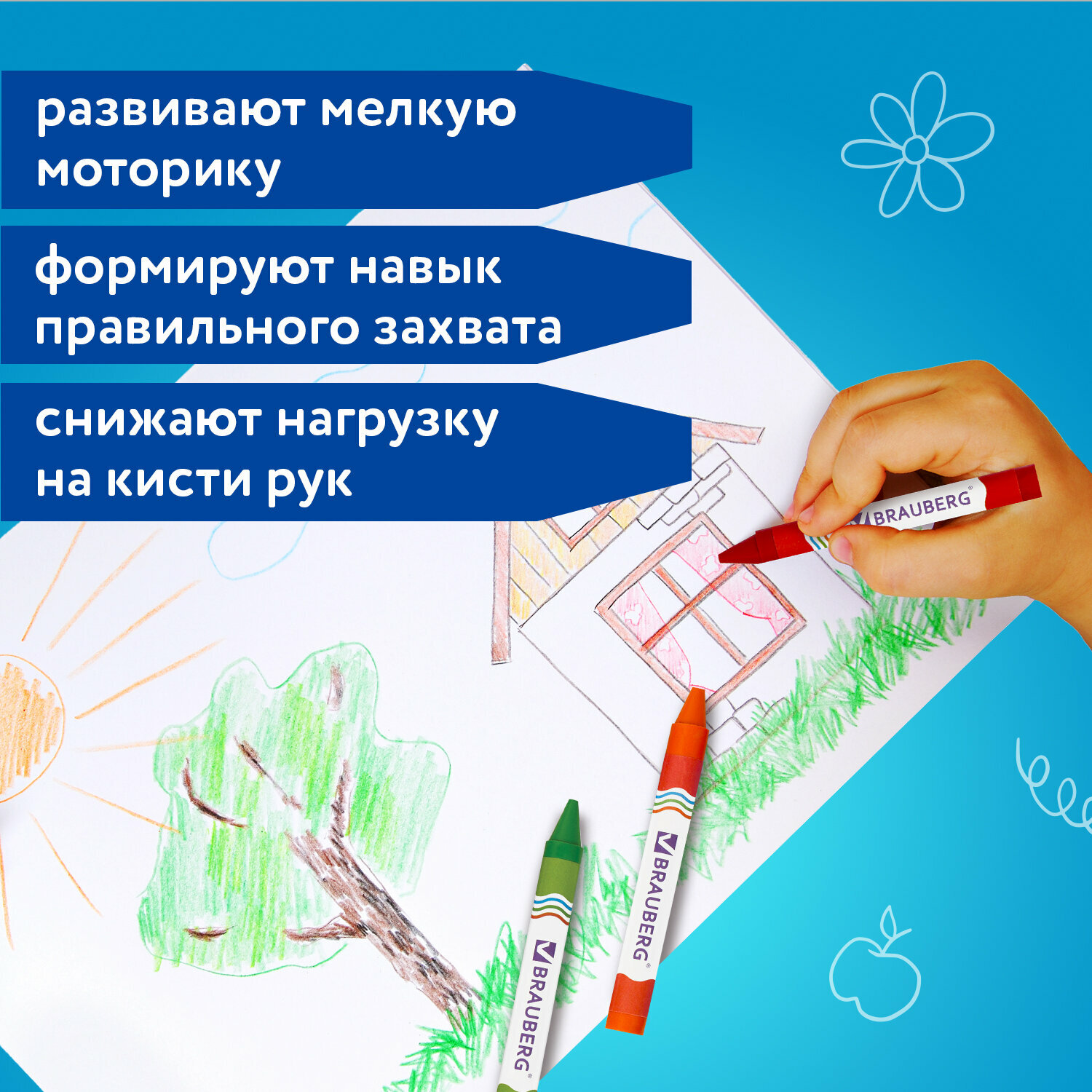 Восковые цветные мелки для рисования утолщенные Brauberg, набор 12 цветов, 222966 интересное: