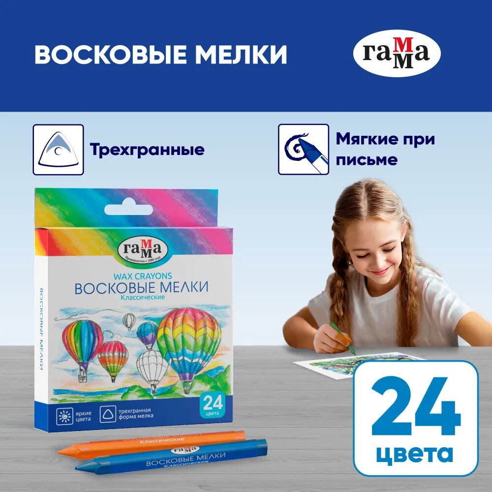 Мелки восковые Гамма "Классические", 24цв, трехгранные интересное: