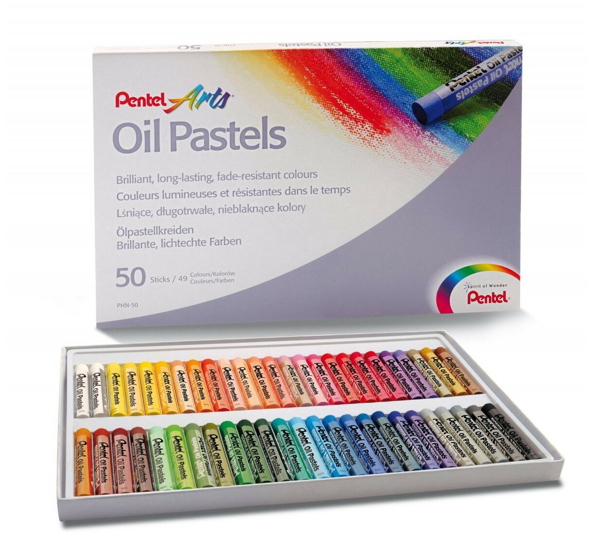 Пастель масляная художественная PENTEL "Oil Pastels", 50 цветов, круглое сечение, картонная упаковка, PHN4-50 интересное: