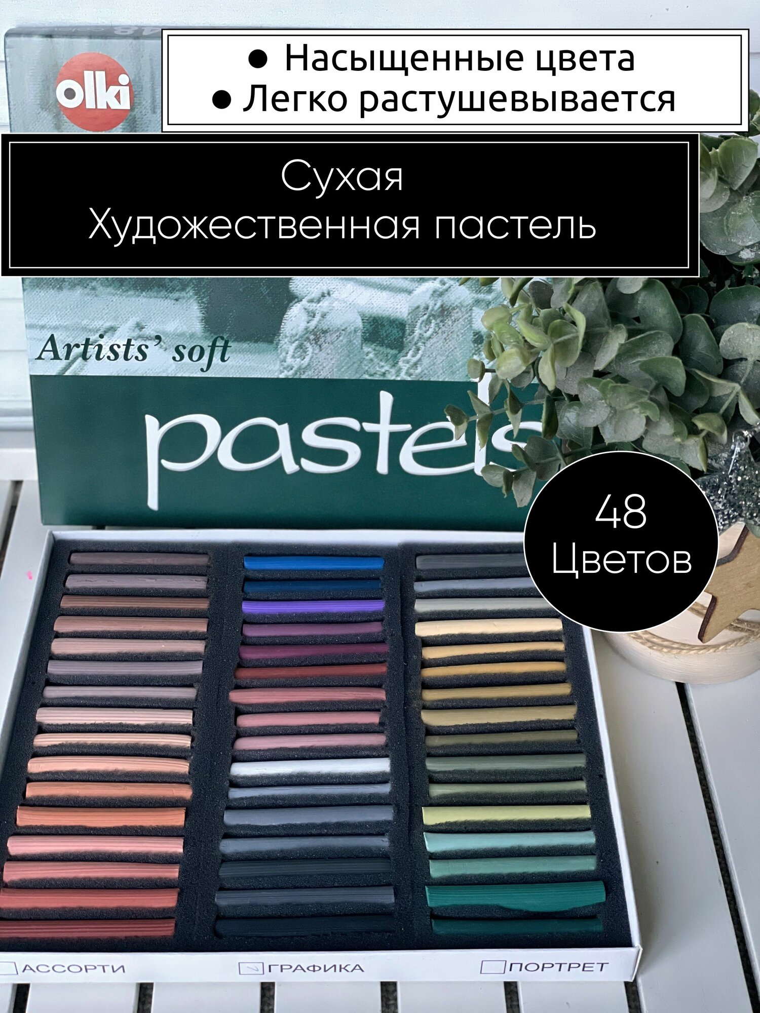 Пастель художественная сухая Olki , 48 цветов интересное: