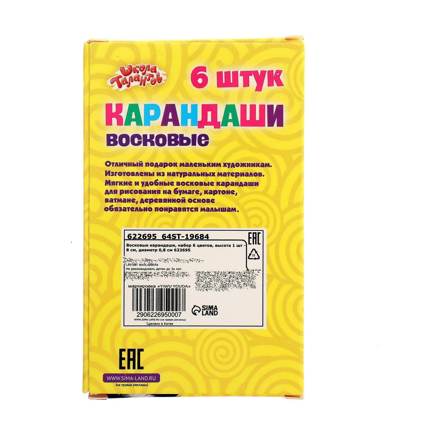 Восковые карандаши, набор 6 цветов, высота 1 шт - 8 см, диаметр 0,8 см интересное: