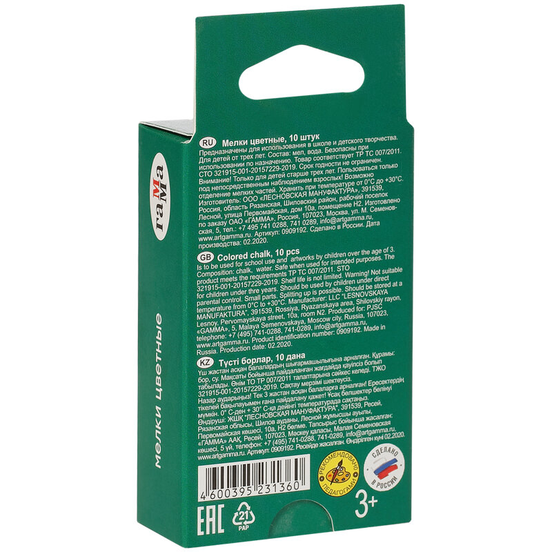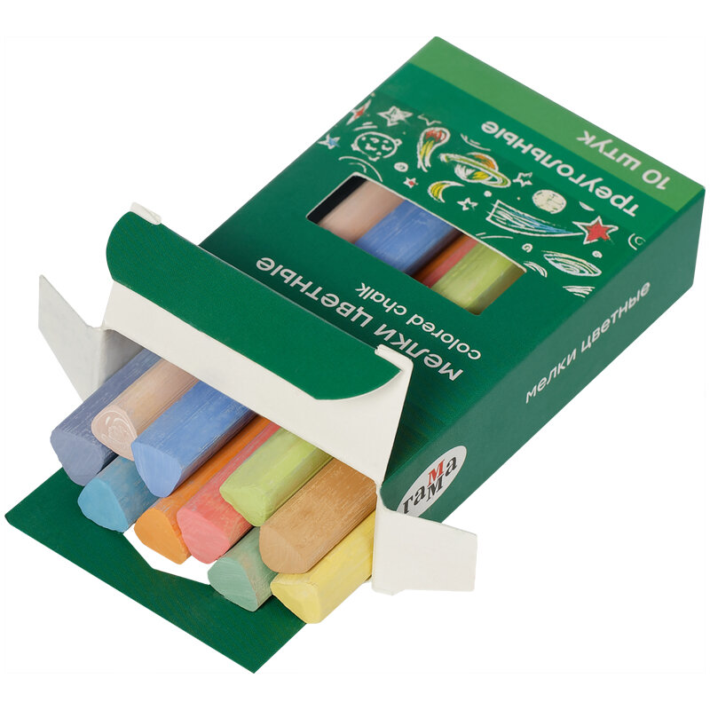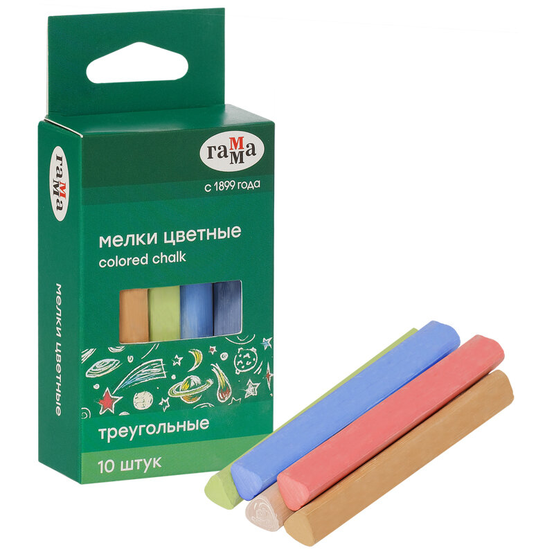 Мелки школьные Гамма цветные, 10шт, мягкие, треугольные в картонной коробке интересное: