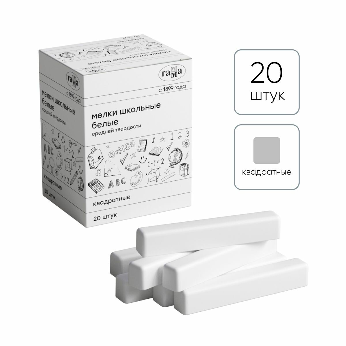 Купить Мел белый Гамма 20 штук, средней твердости, квадратный
