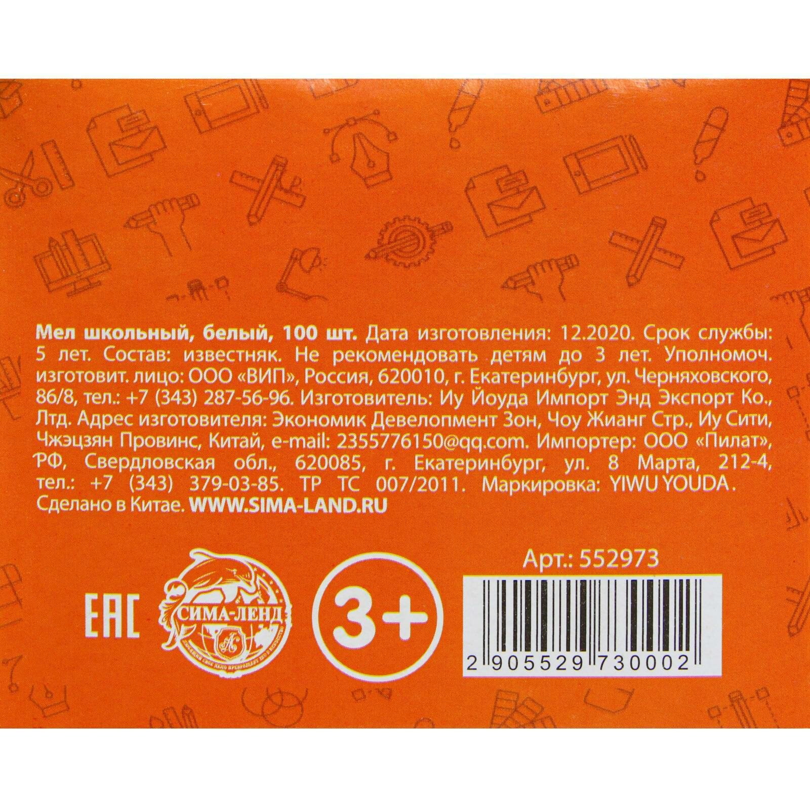 Мел школьный, белый, набор 100 штук, круглый, беспыльный, в картонной коробке, 552973 интересное: