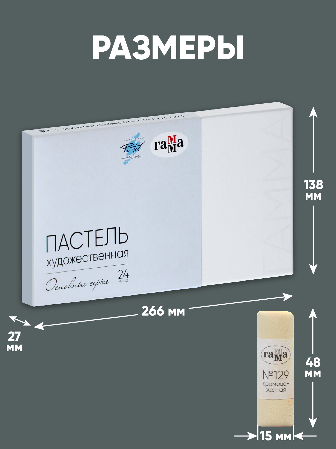 Пастель художественная Гамма, 24 серых цвета, картон. упак. интересное:
