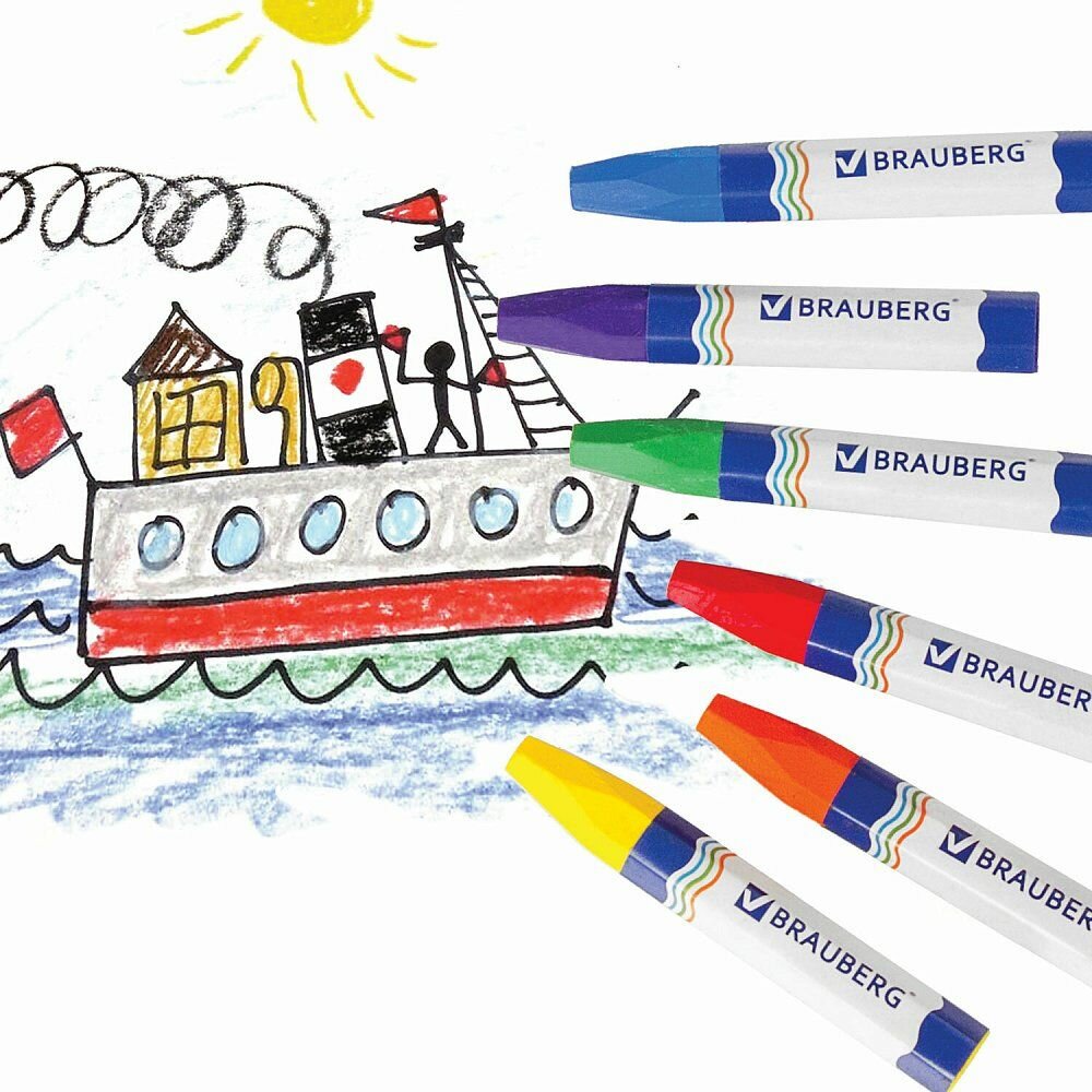 Восковые мелки Brauberg утолщенные 6 цветов, на масляной основе, яркие цвета (222969) интересное: