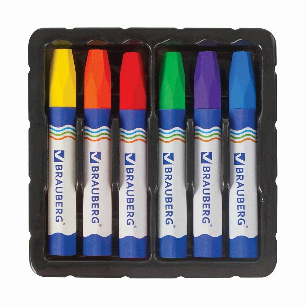 Купить Восковые мелки Brauberg утолщенные 6 цветов, на масляной основе, яркие цвета (222969)