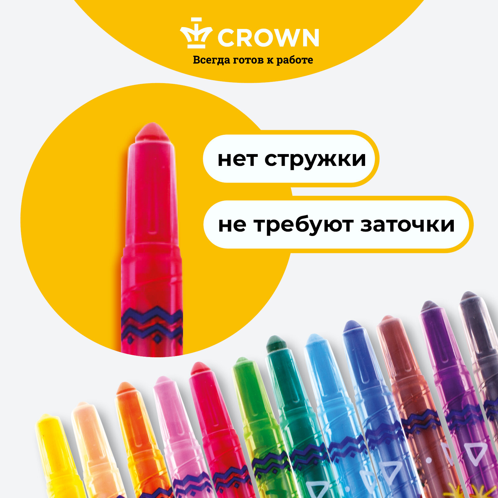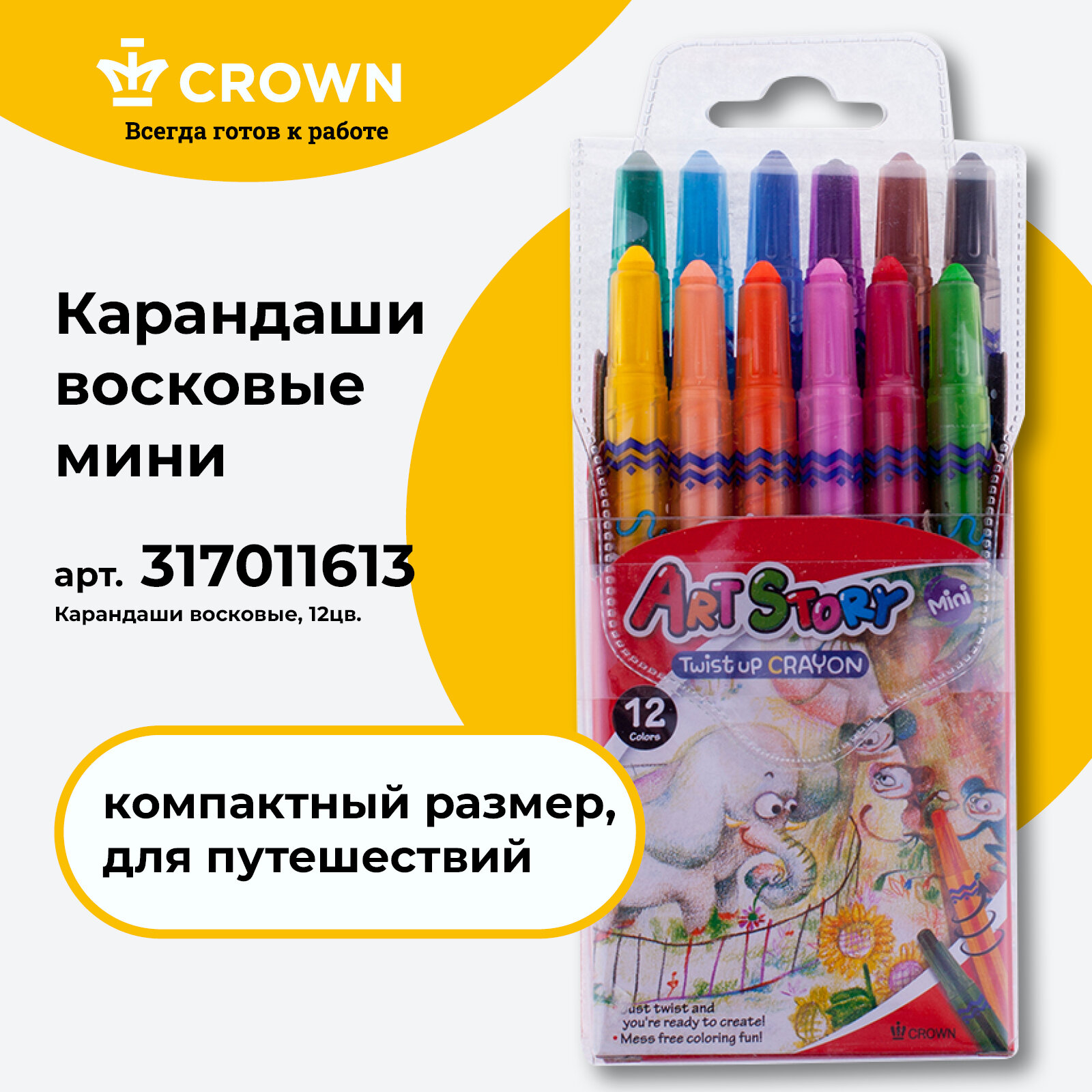 Карандаши цветные восковые для рисования Crown "ArtStory" выкручивающиеся / Набор карандашей из 12 цветов интересное: