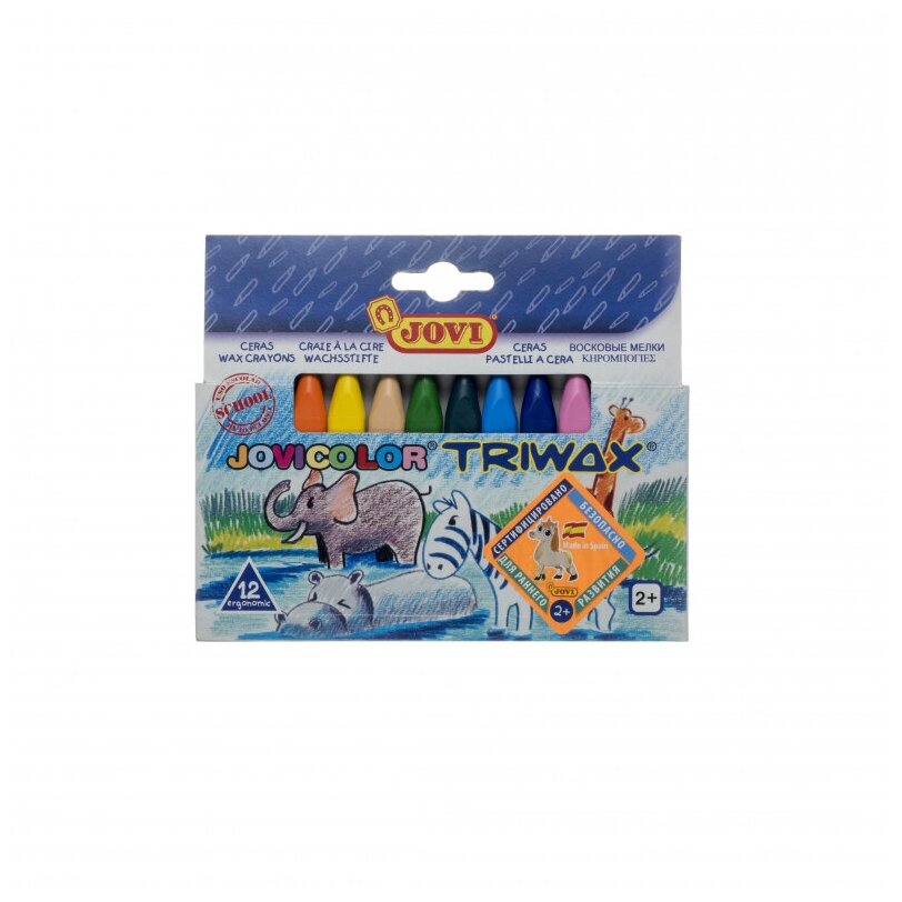 Купить Мелки восковые JOVI, 12 цветов, трехгранные, картон, европодвес
