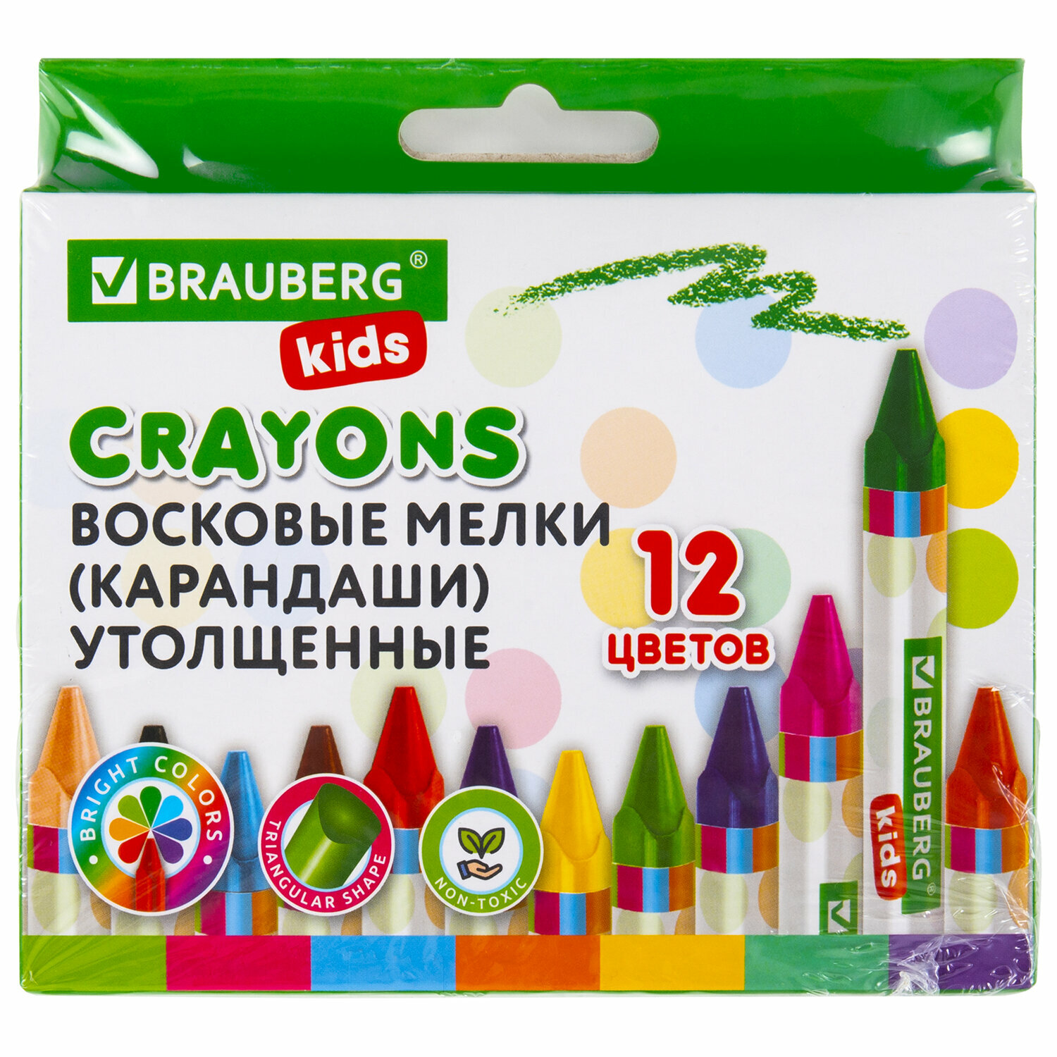 Купить Восковые мелки для рисования утолщенные Brauberg Kids, набор 12 цветов, 271695