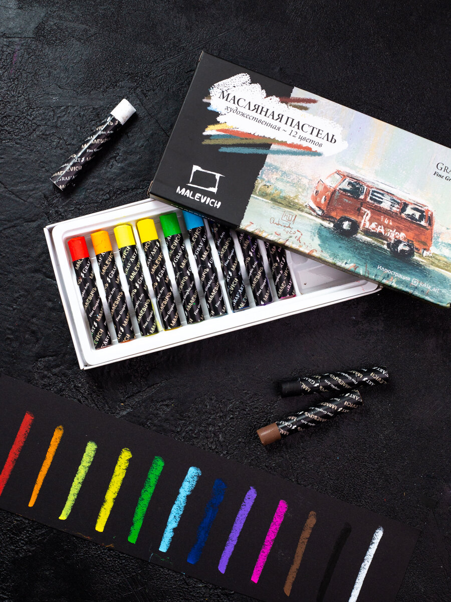 Пастель масляная Малевичъ, набор пастели художественной 12 цветов интересное: