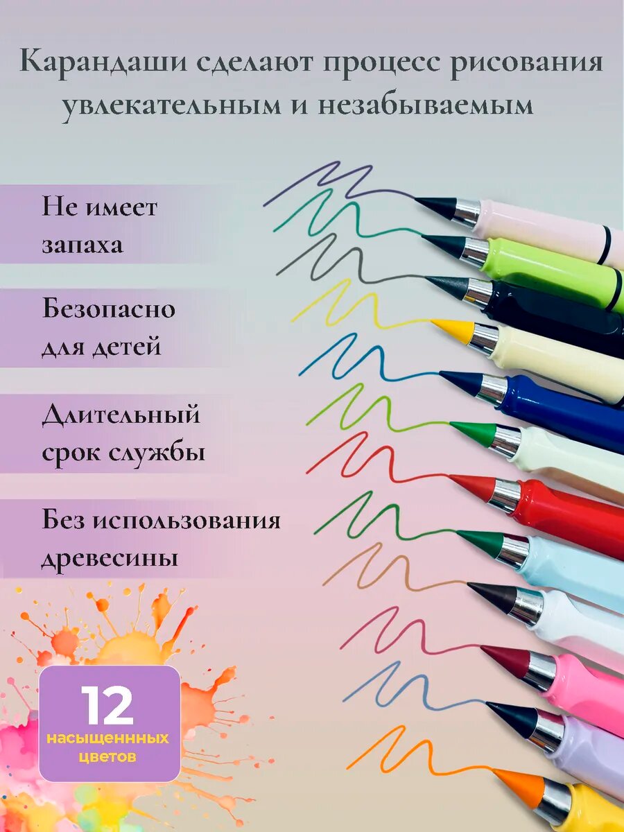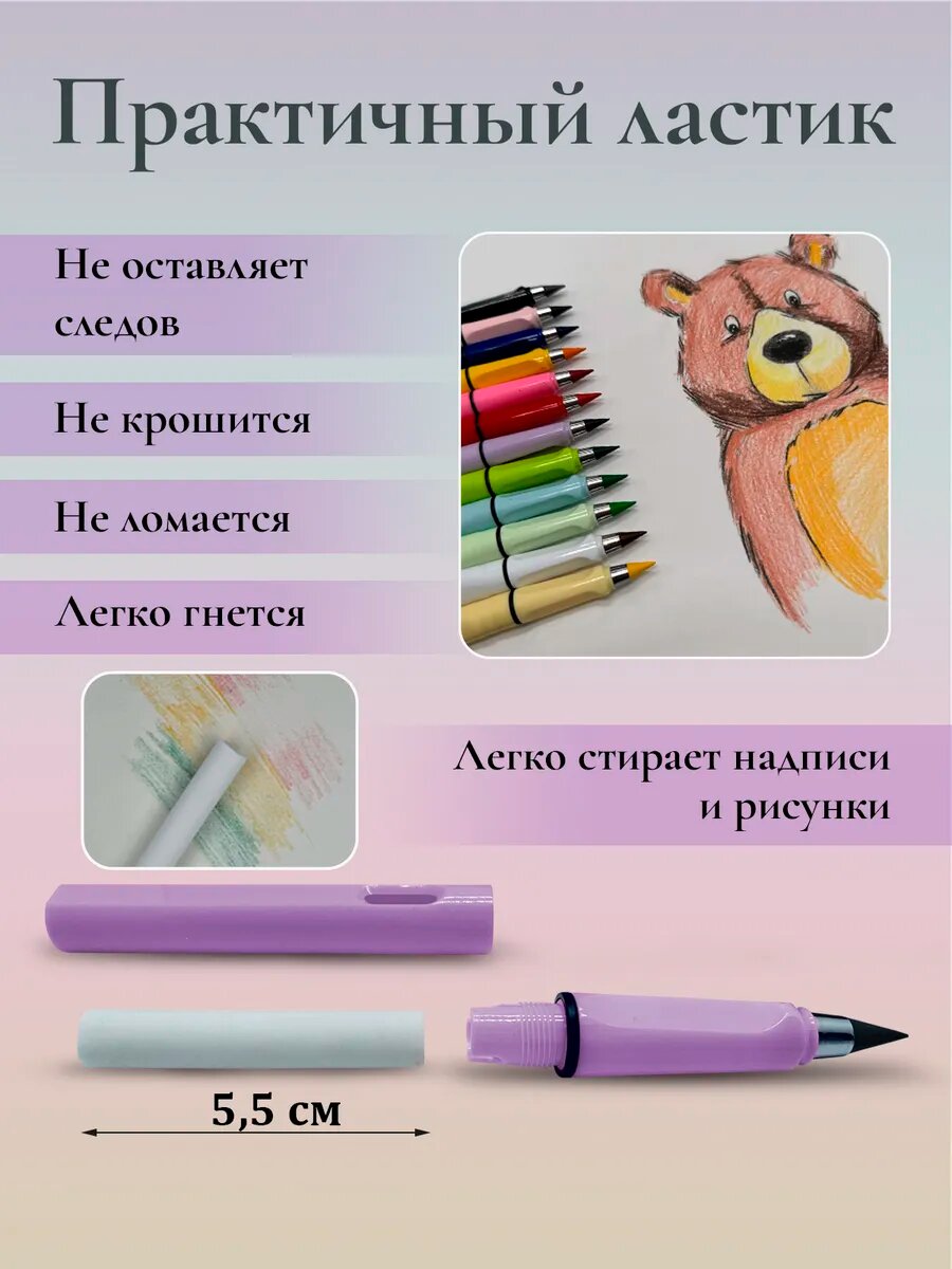 Карандаши цветные, вечные, Набор цветных карандашей, карандаши вечные, с ластиками, 12 цветов интересное: