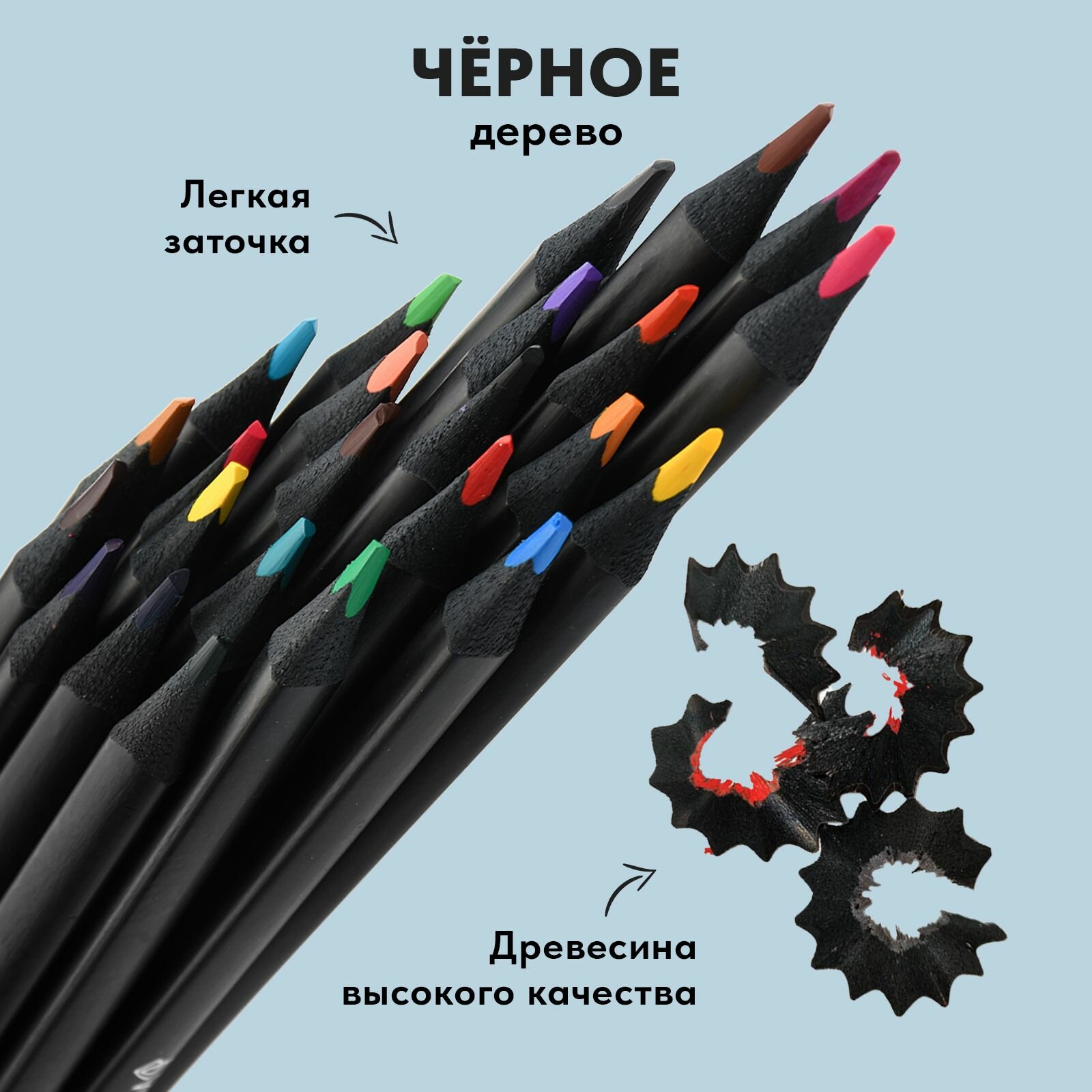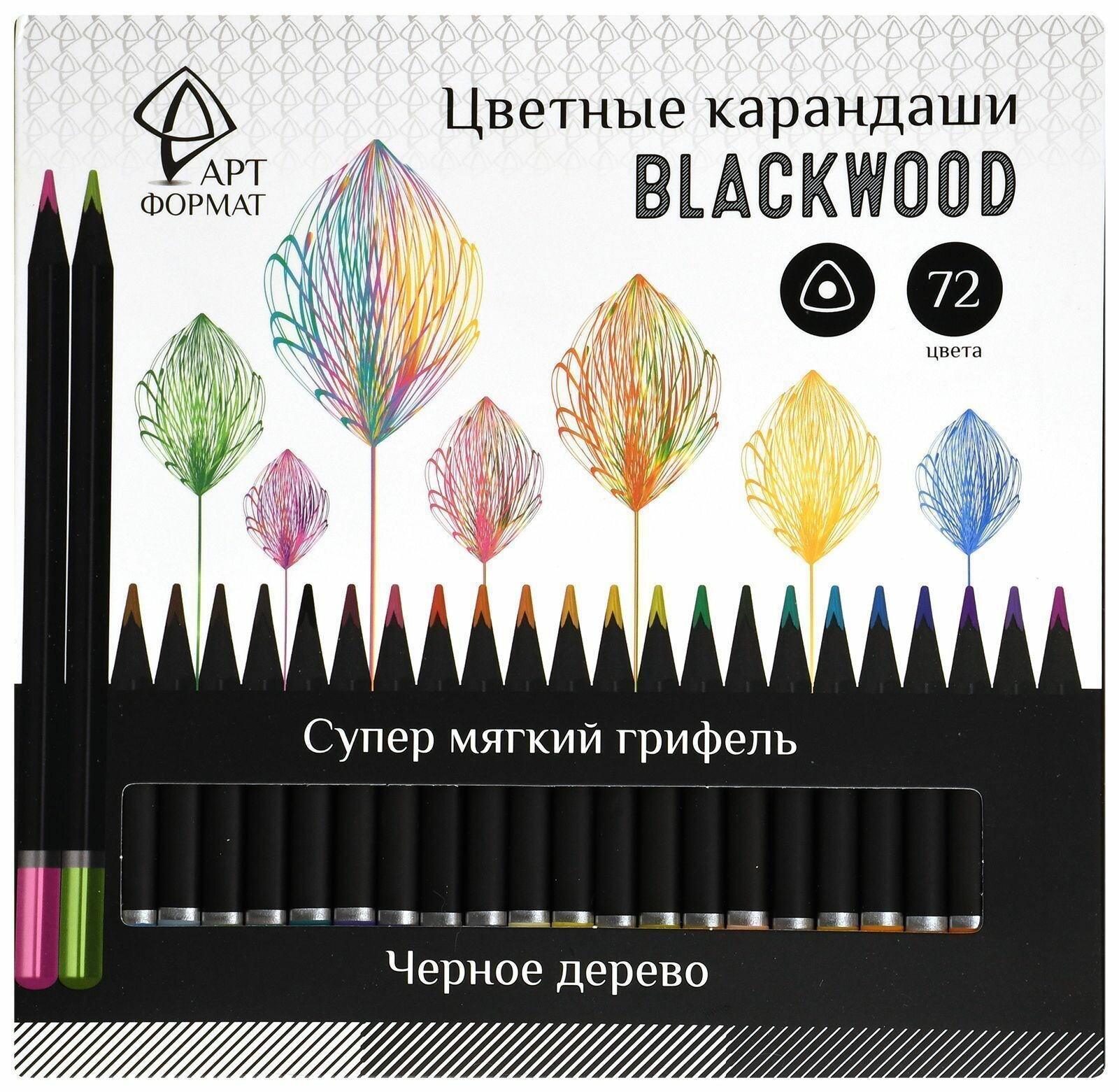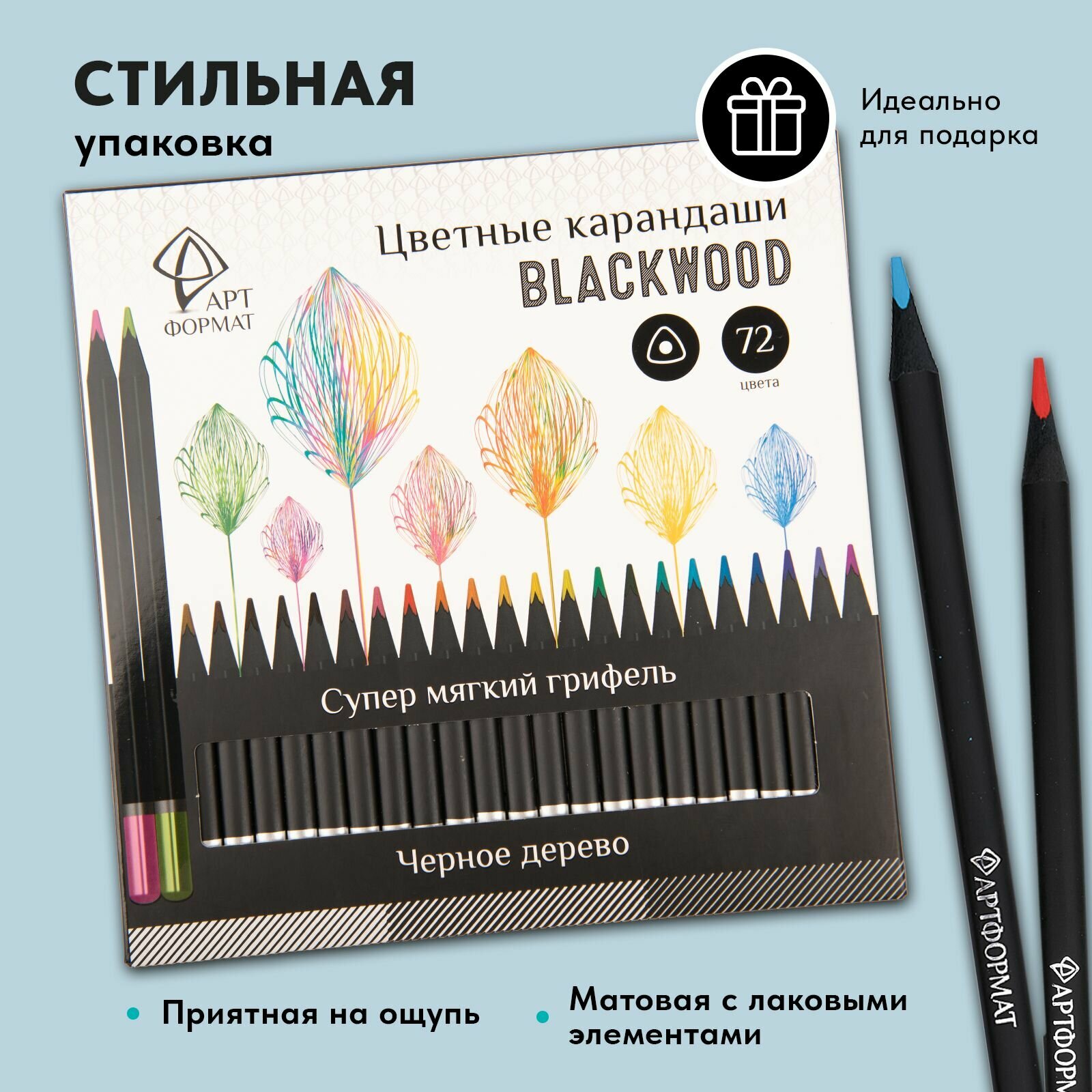 Цветные карандаши АртФормат Blackwood 72 цветов супер мягкие трехгранный деревянный корпус интересное: