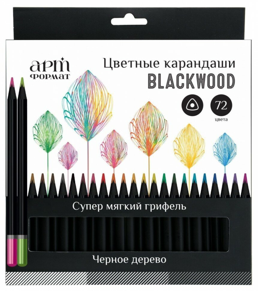 Купить Цветные карандаши АртФормат Blackwood 72 цветов супер мягкие трехгранный деревянный корпус