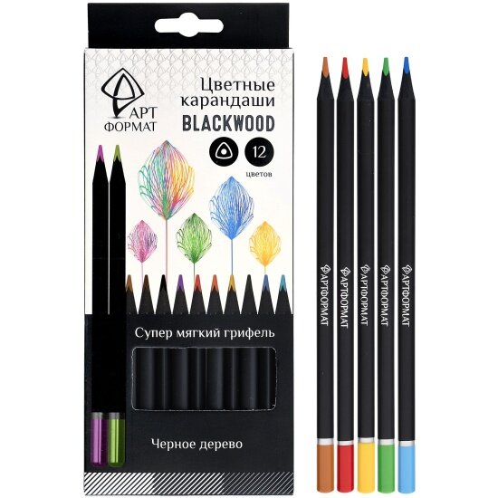 Купить Набор цветных карандашей Артформат Blackwood 12 цв кругл корп дерев карт уп