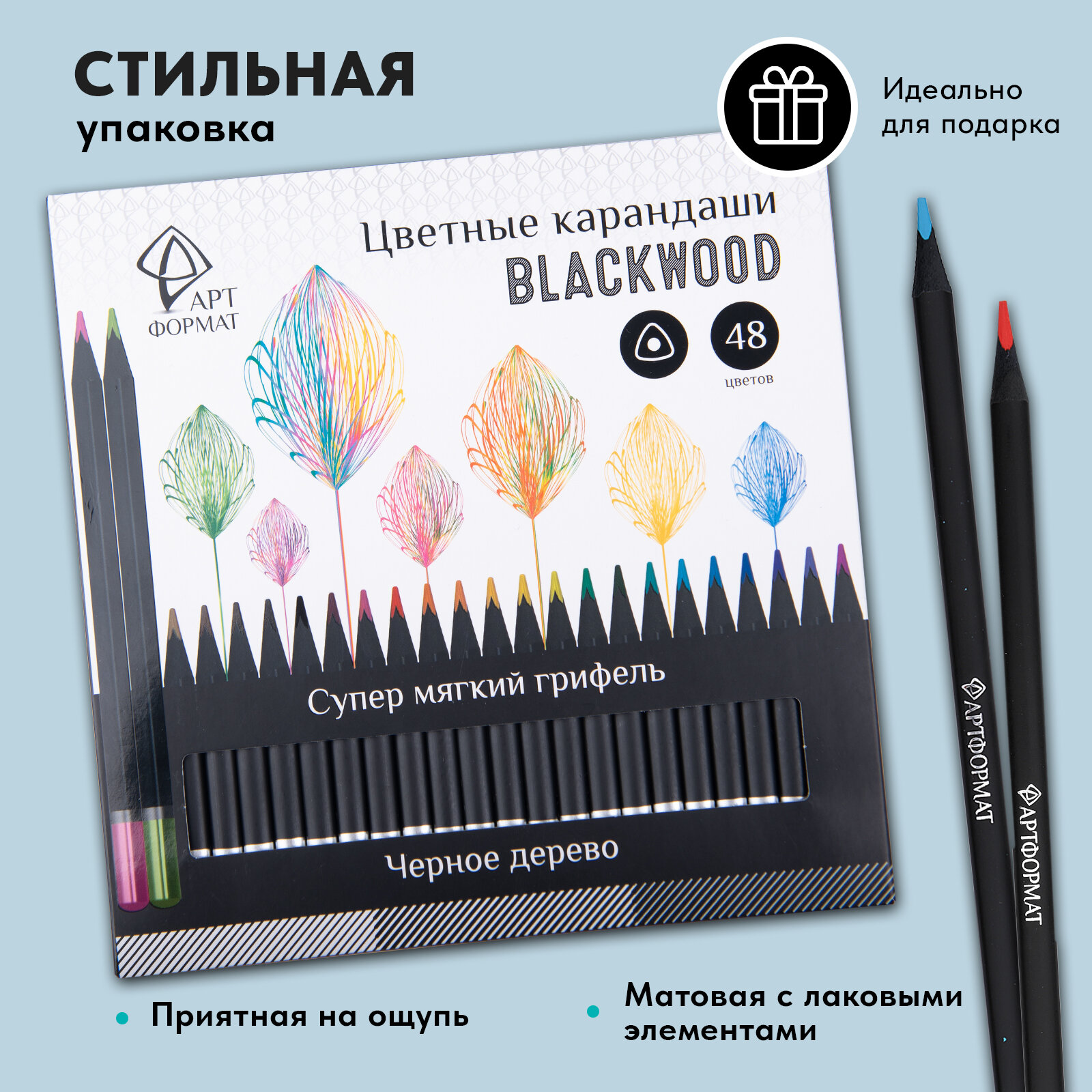 Набор цветных карандашей Арт Формат Blackwood, трехгранные, 24 цвета, (АРТформат AF03-051-24)