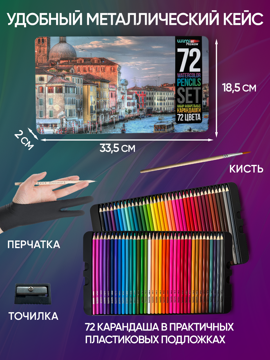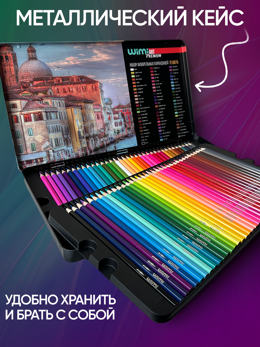 Купить Карандаши цветные WiMi, акварельные, для рисования, в металлическом кейсе, набор 72 шт