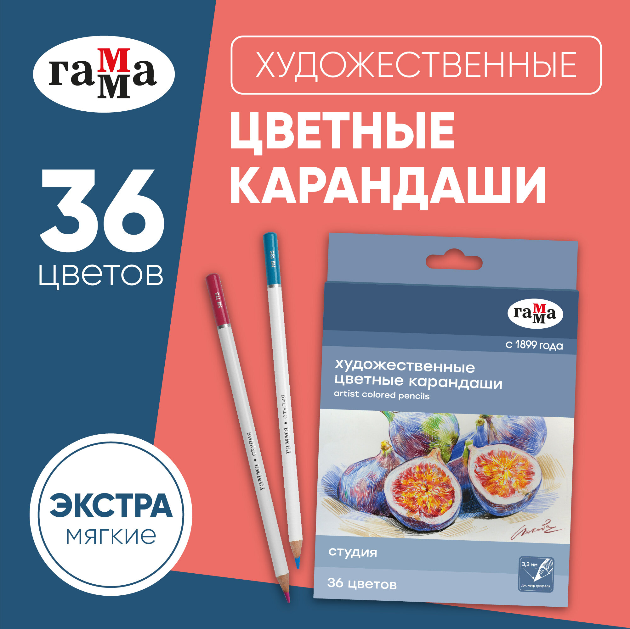Купить Карандаши цветные художественные Гамма "Студия", 36 цветов, заточенные, картонная упаковка