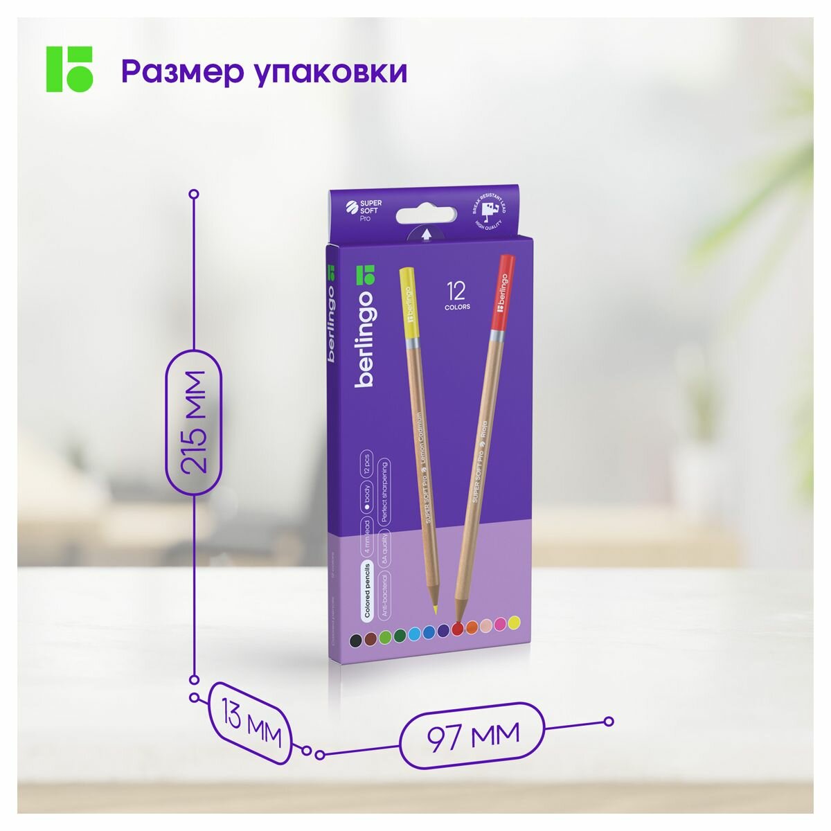 Купить Карандаши цветные Berlingo "SuperSoft. Pro" 12цв, круглые, заточен, картон