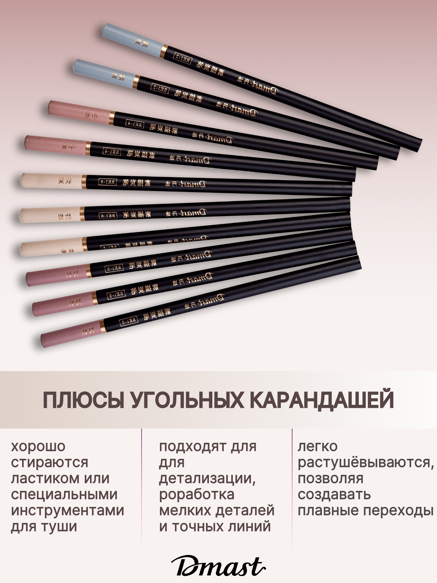 Ниже Вы можете прочитать отзывы на Угольные карандаши Dmast для рисования, 10 штук, круглые, дерево, черный цвет, ознакомится с подробными характеристиками, посмотреть интересные обзоры и фотографии на Угольные карандаши Dmast для рисования, 10 штук, круглые, дерево, черный цвет.