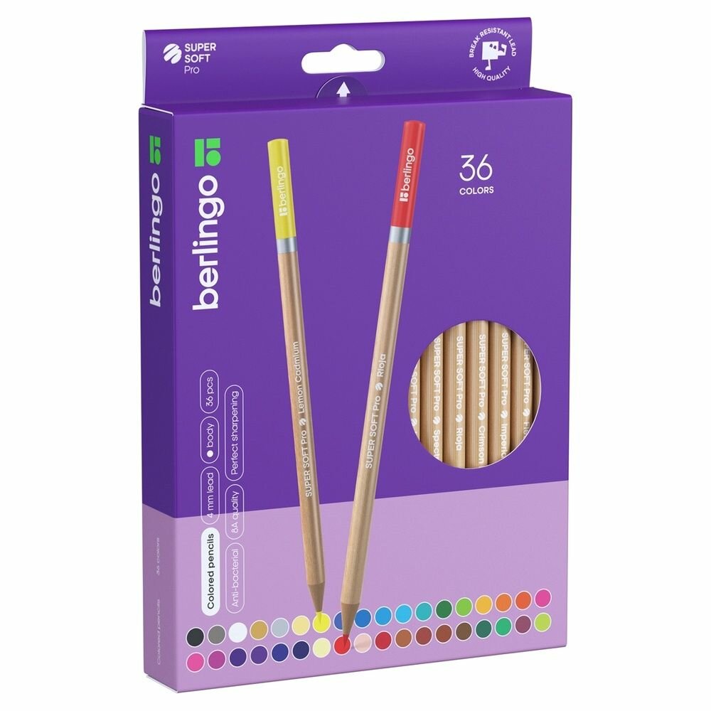 Купить Карандаши цветные Berlingo "SuperSoft. Pro", 36 цветов, круглые, заточены (SP00036)