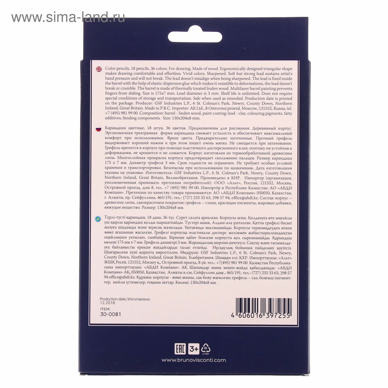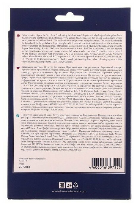 Карандаши BrunoVisconti, цветные, 36 цветов, 18 шт. , TwinColor, Арт. 30-0081 интересное: