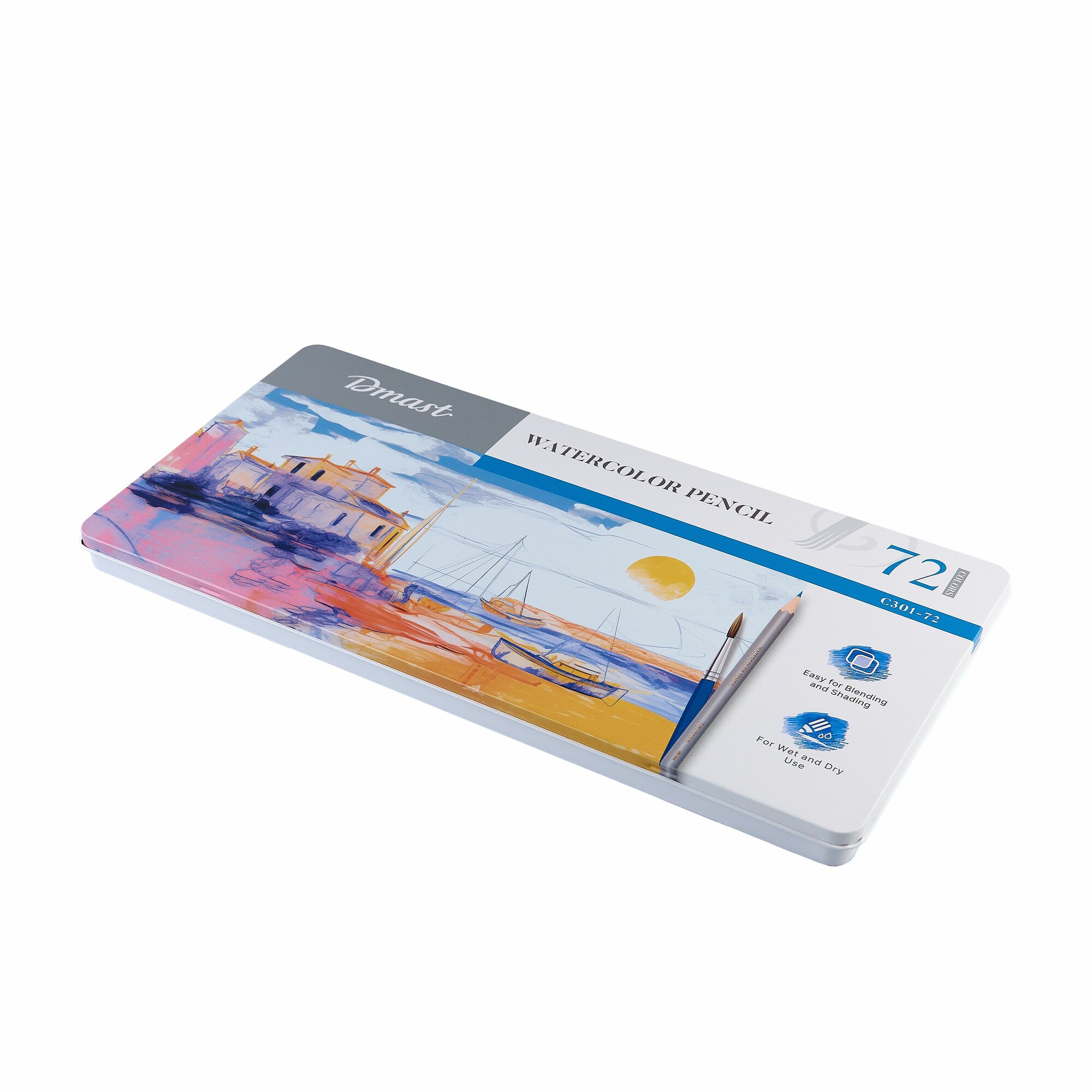 Купить Карандаши цветные акварельные для рисования 72 цвета Dmast в металлическом пенале