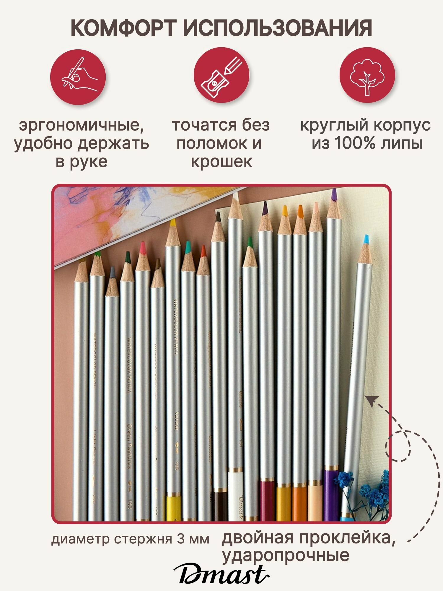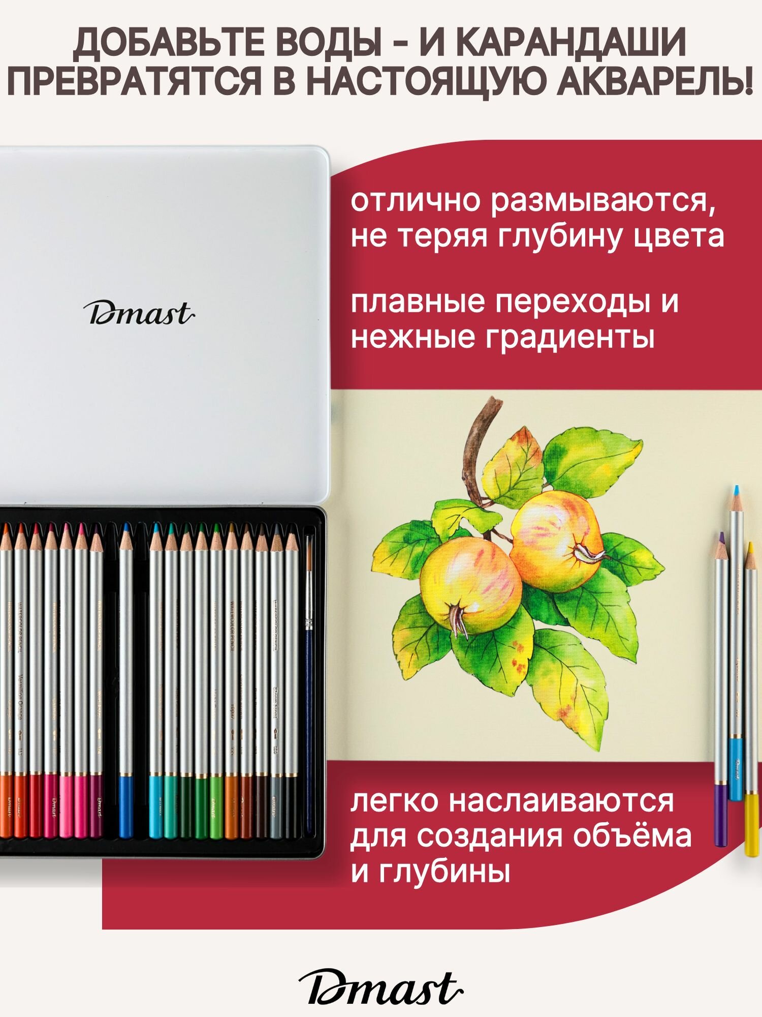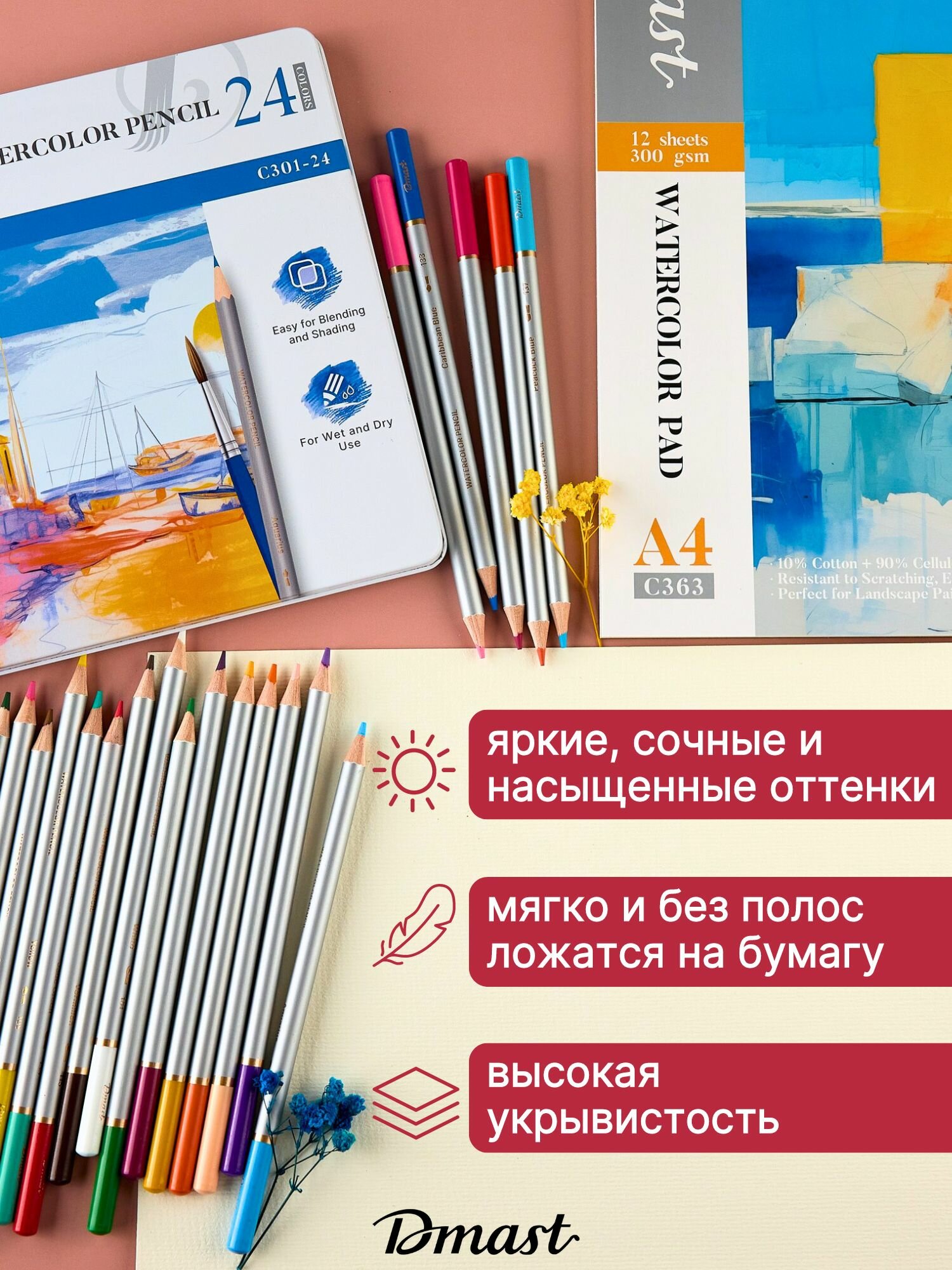 Карандаши цветные акварельные для рисования Dmast 24 цвета в металлическом пенале интересное: