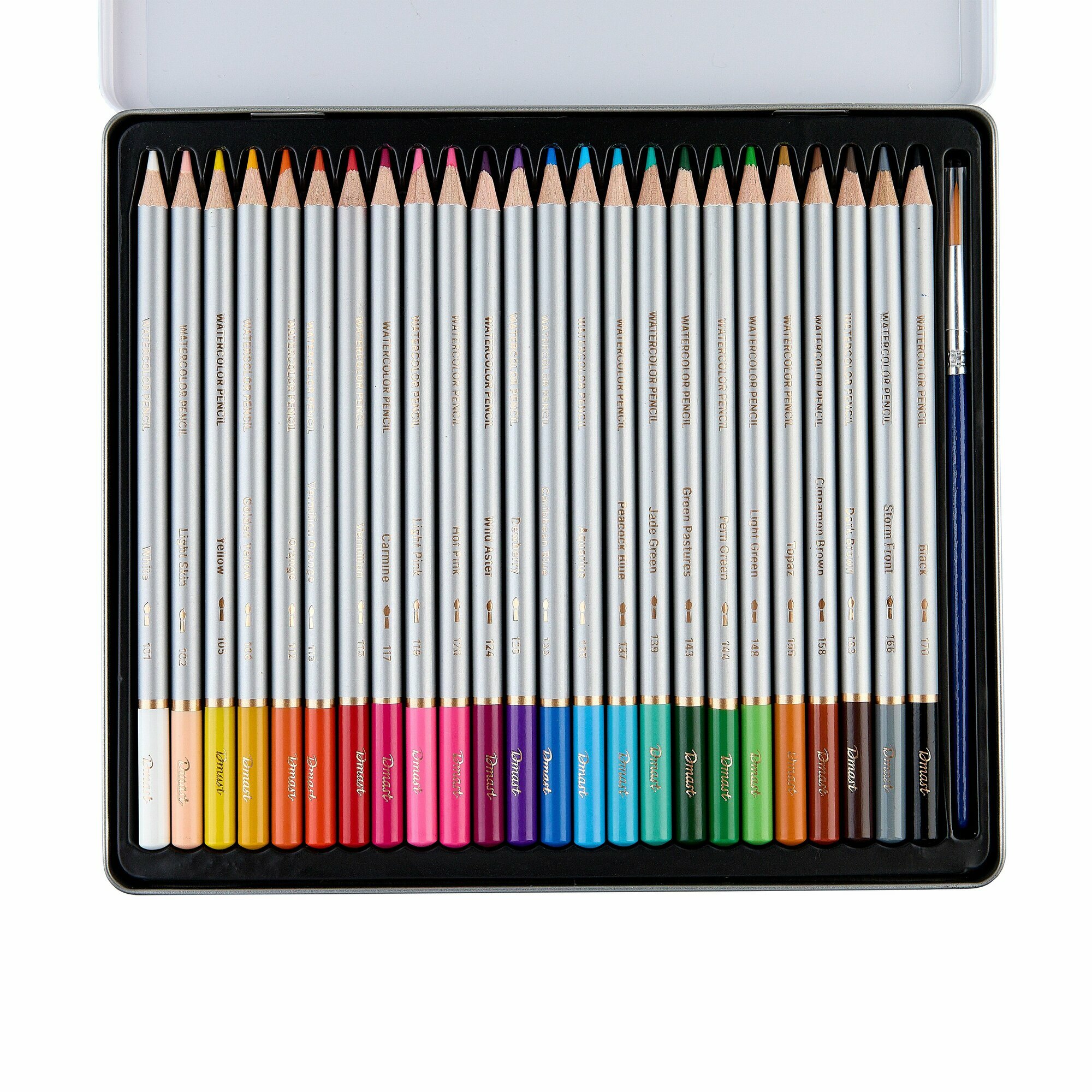 Купить Карандаши цветные акварельные для рисования Dmast 24 цвета в металлическом пенале