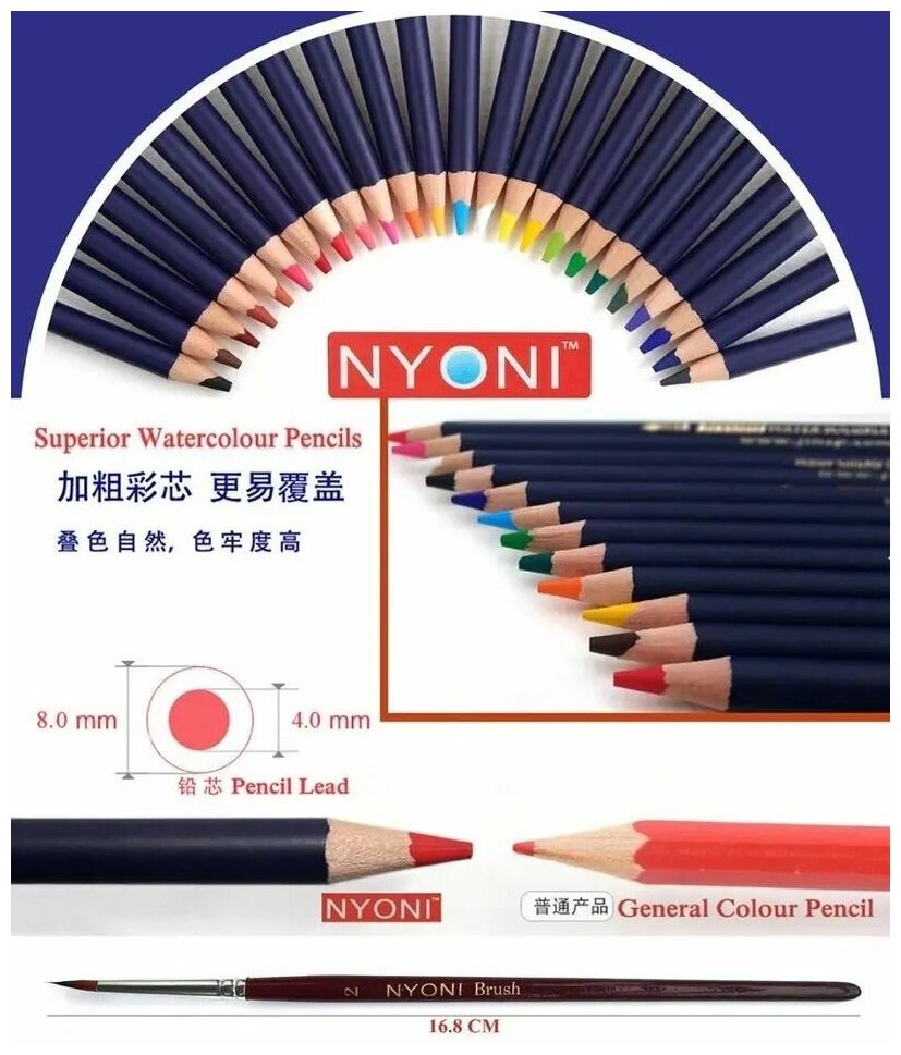 Набор акварельных карандашей в профессиональной упаковке NYONI 72 шт интересное: