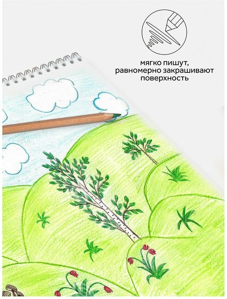 Цветные карандаши для школы 24 цвета, шестигранные / Набор цветных карандашей для рисования школьный Гамма "Мультики"