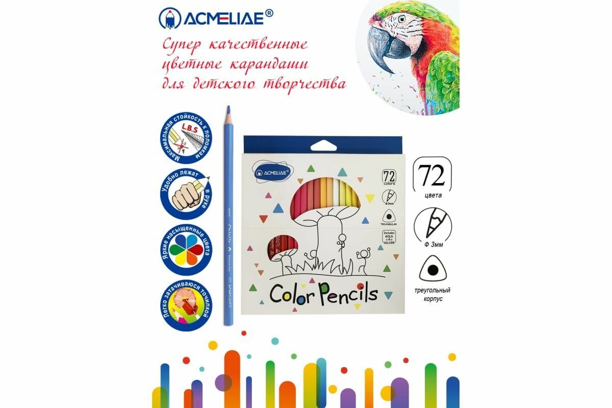 Набор цветных трехгранных карандашей ACMELIAE 72 цветов, в картонном футляре 9402-72 интересное: