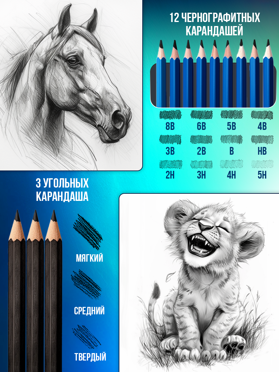 Купить Карандаши цветные и простые WiMi, набор для рисования в пенале