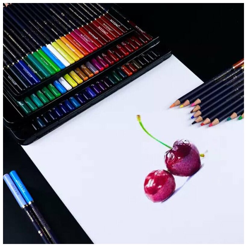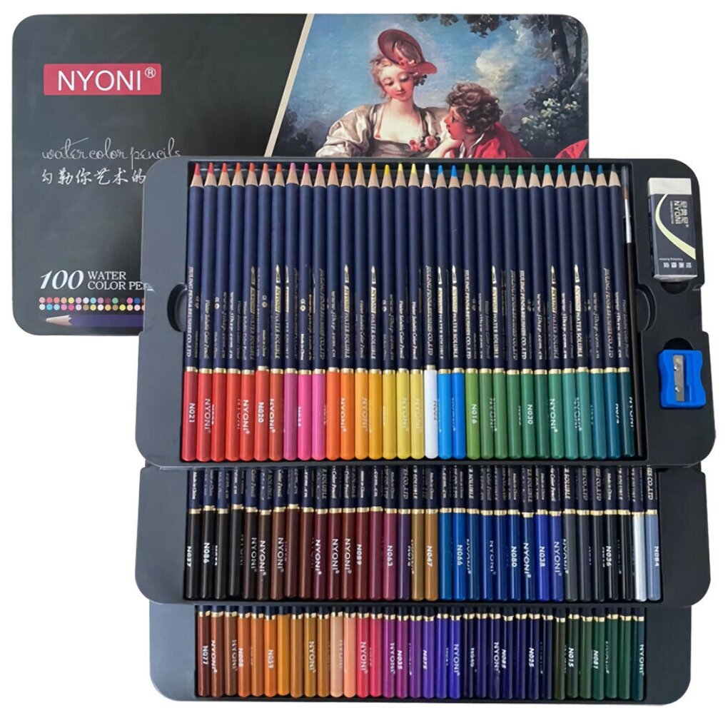 Набор акварельных карандашей в профессиональной упаковке NYONI 100шт интересное: