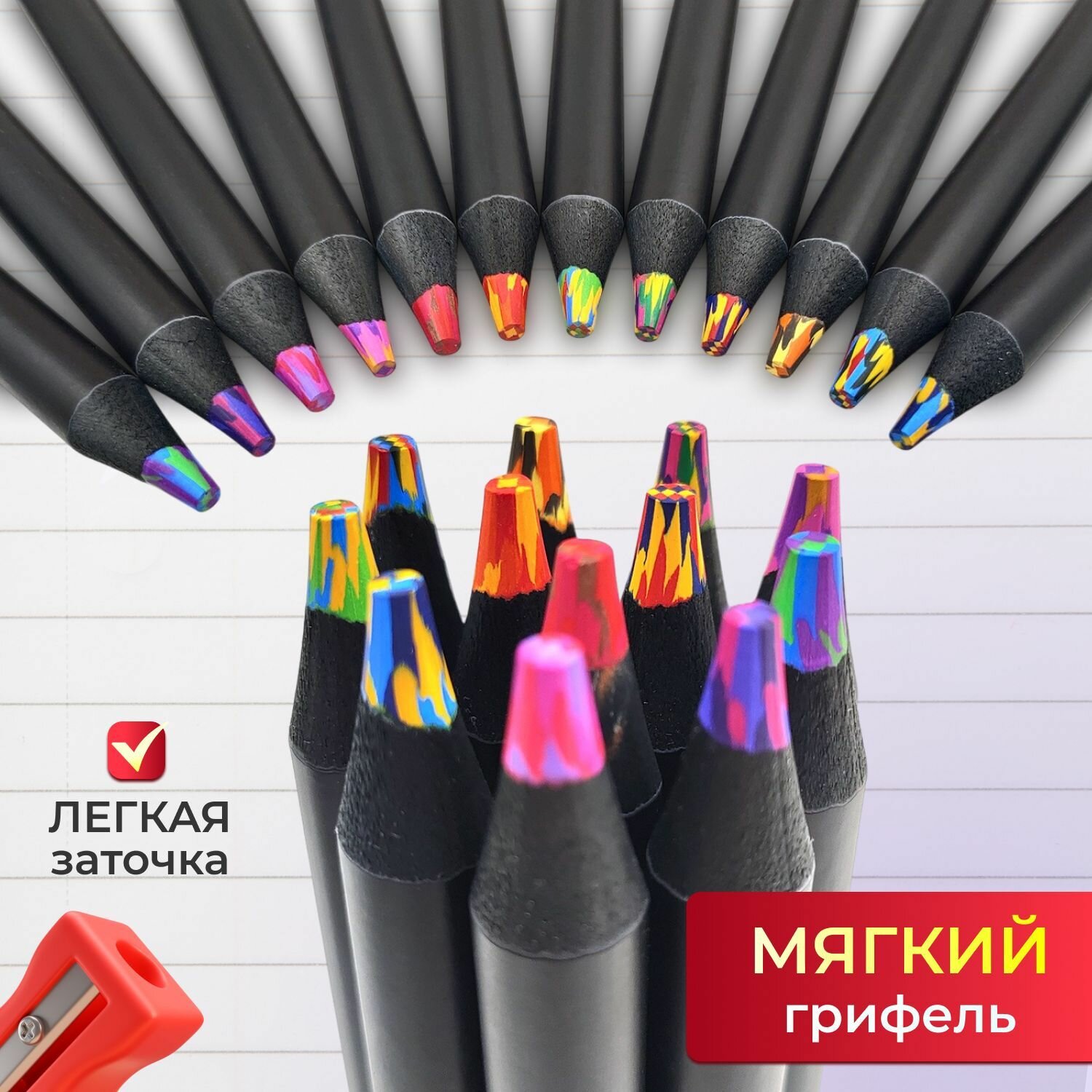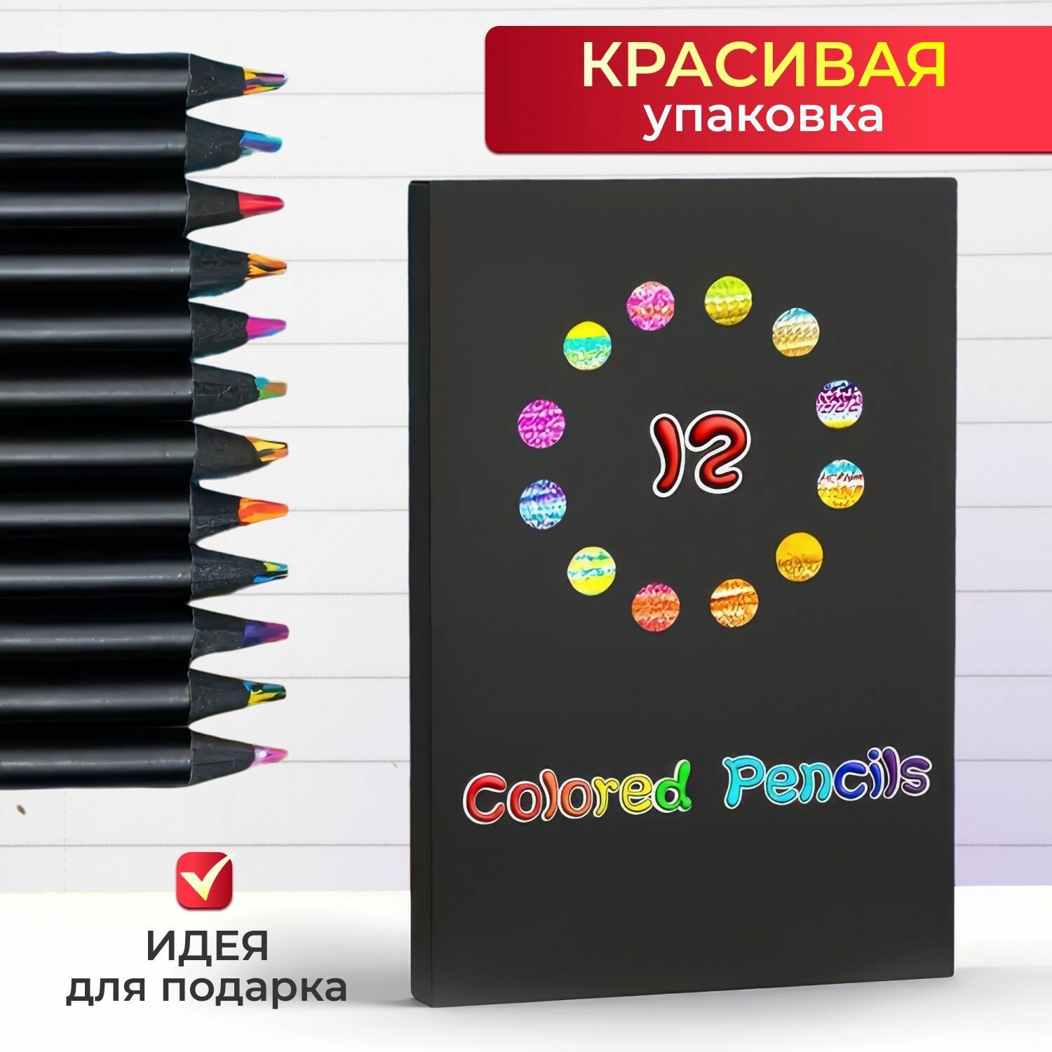 Радужные карандаши 12 шт, набор карандашей с многоцветным грифелем интересное: