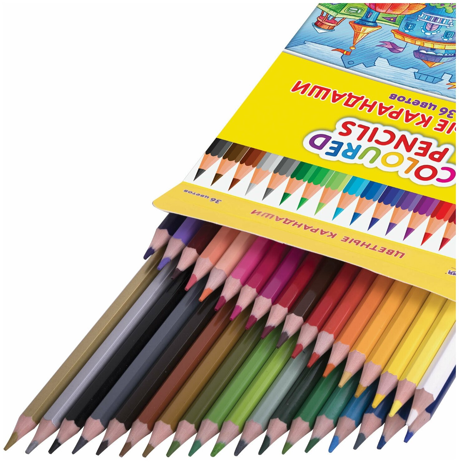 Карандаши пластиковые цветные для рисования Юнландия Домики, 36 цветов, классические, шестигранные, грифель мягкий 3 мм, 181839 интересное: