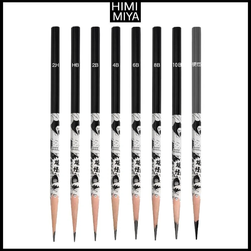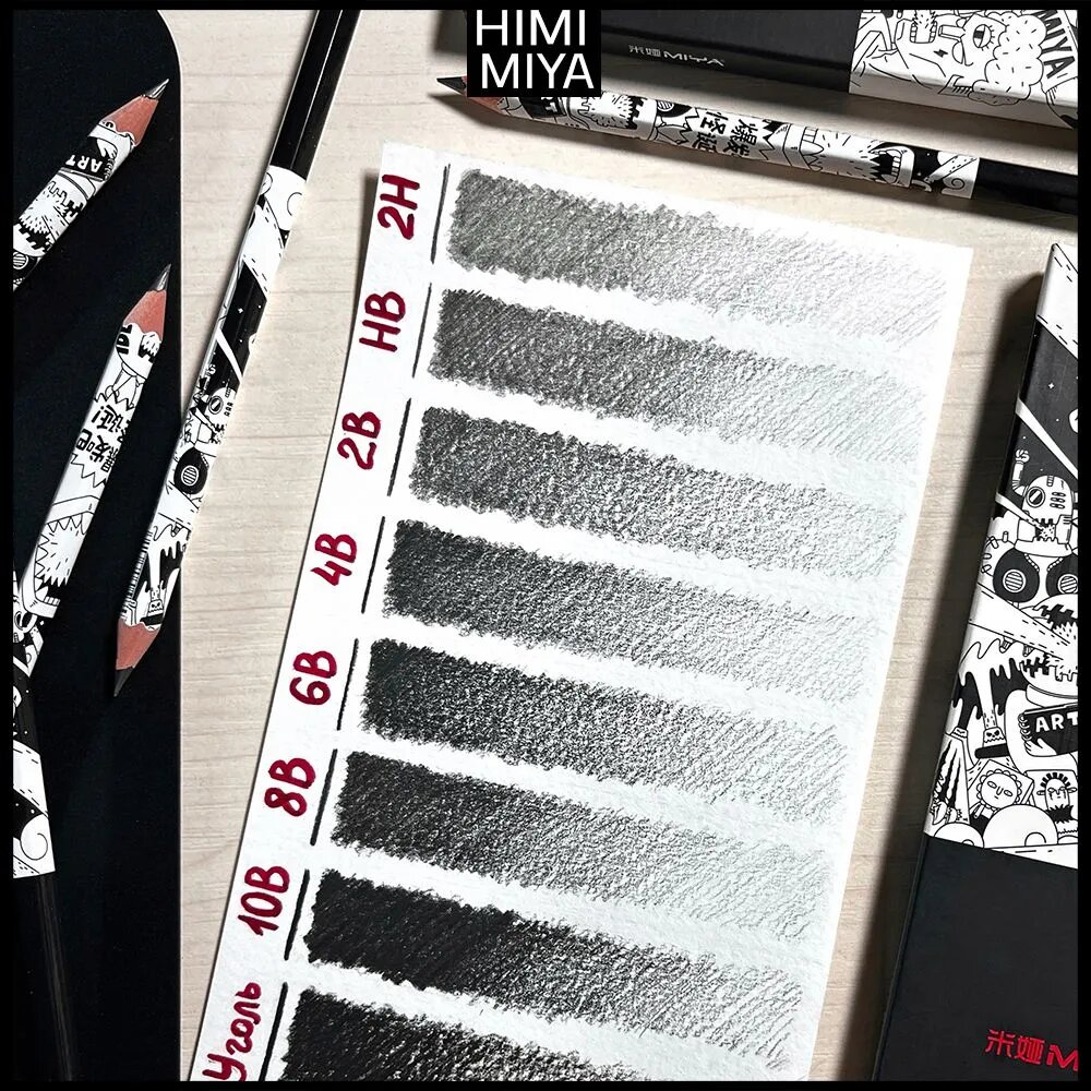 Купить Карандаши HIMI MIYA простые чернографитные : 2Н, НВ, 2В, 4В, 6В, 8В, 10В + Угольный карандаш 8 штук BQB50