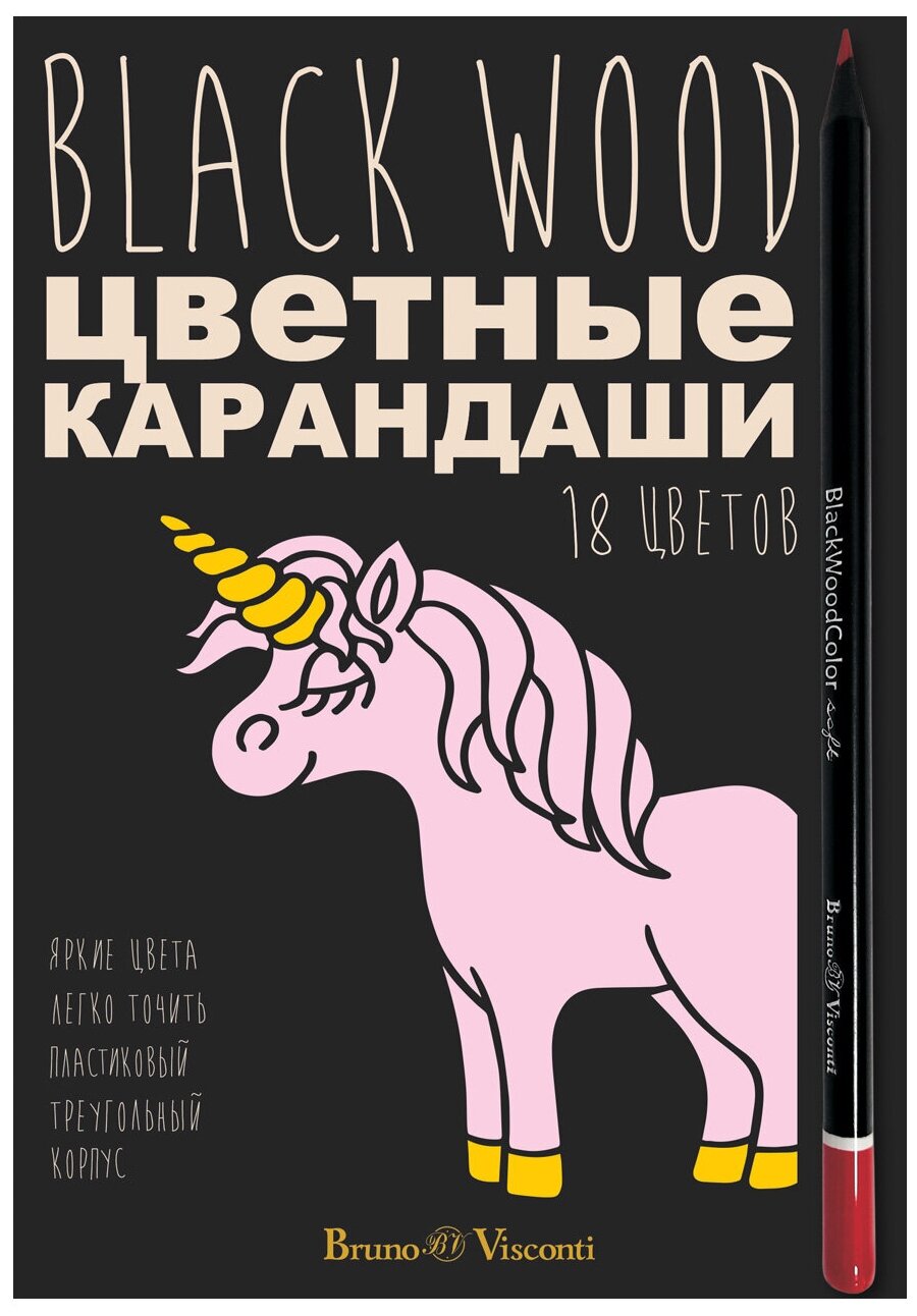 Купить Карандаши BrunoVisconti, цветные, 18 цветов, 4 вида , BlackWoodColor, Арт. 30-0098, упаковка в ассортименте
