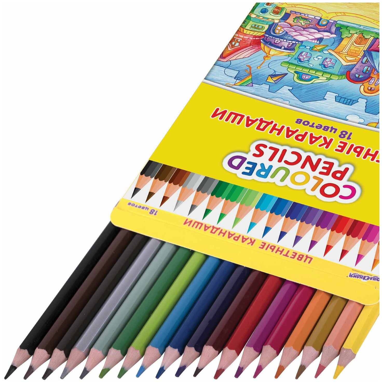 Карандаши пластиковые цветные для рисования Юнландия Домики, 18 цветов, классические, шестигранные, грифель мягкий 3 мм, 181837 интересное:
