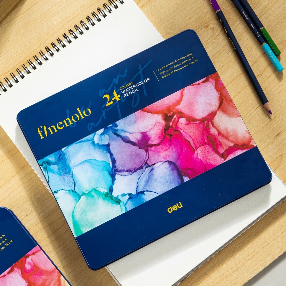 Набор акварельных карандашей Finenolo 24 цвета в металлическом пенале