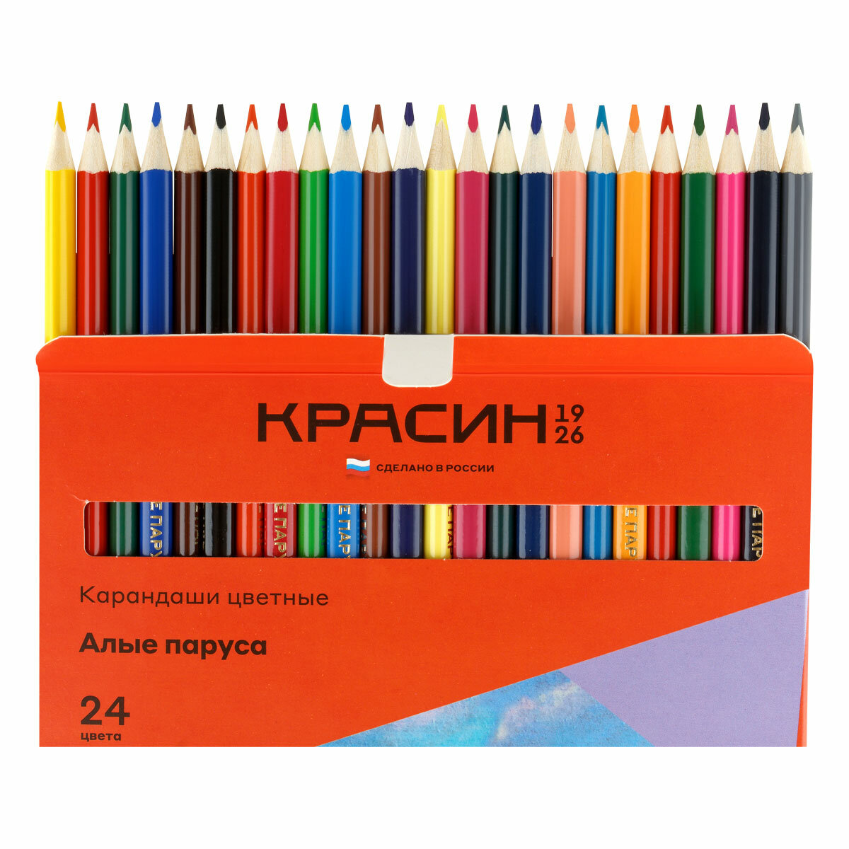 Купить Карандаши цветные Красин "Алые Паруса", 24цв, трехгран, заточен, картон, европодвес, 2 штуки