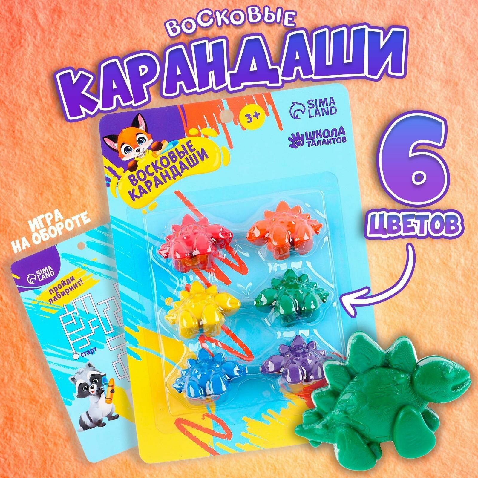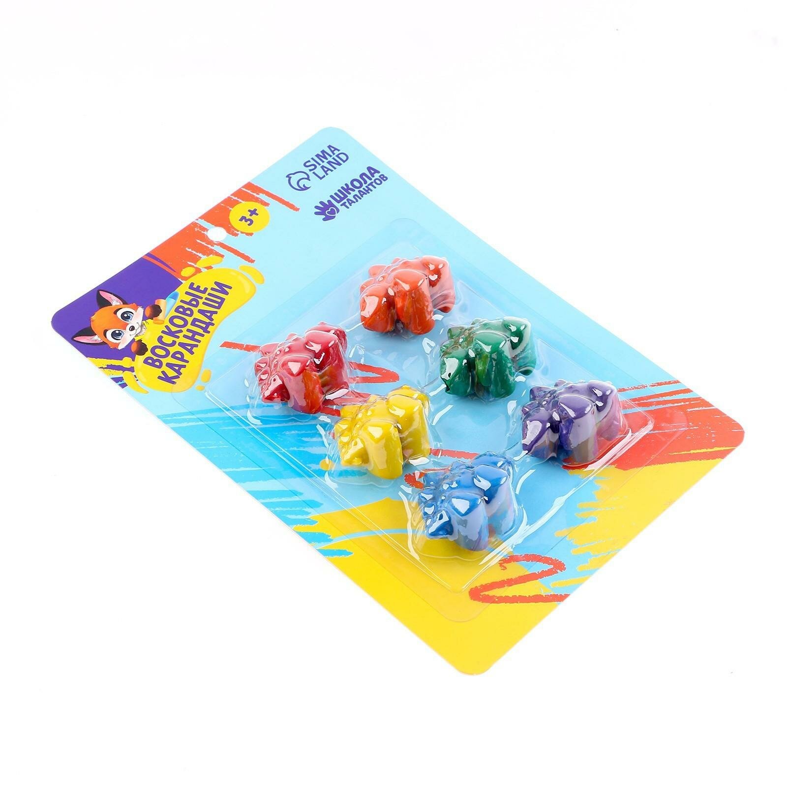 Купить Карандаши восковые "Динополис", набор 6 шт, фигурные, Школа талантов