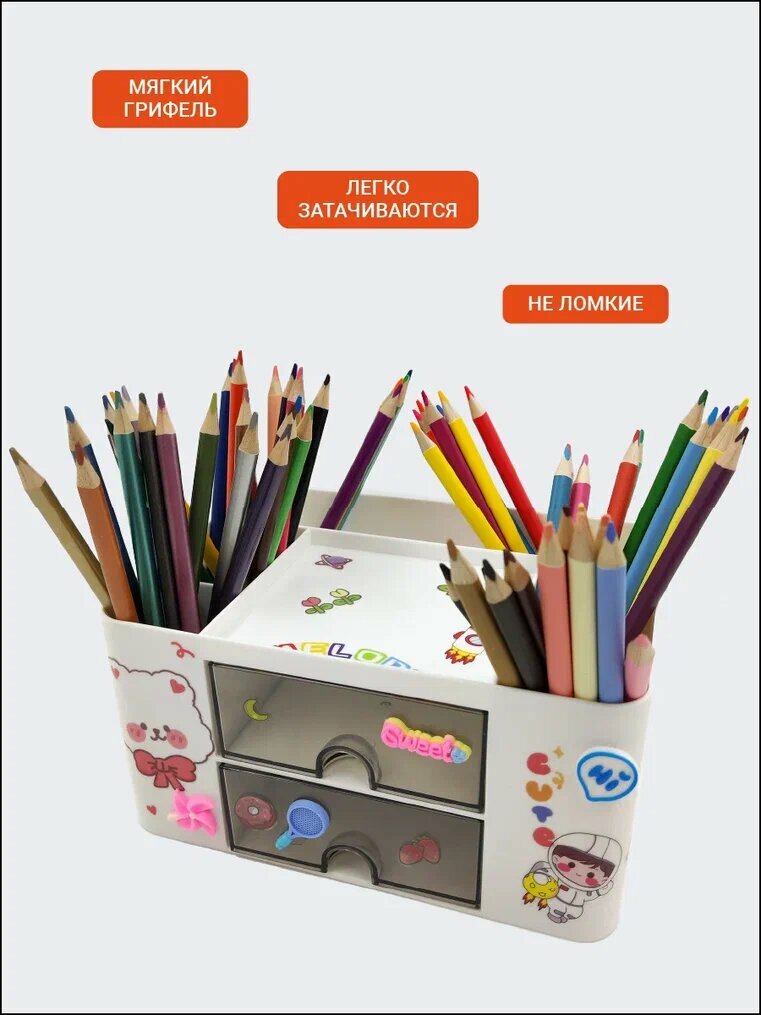 СохранитьКарандаши цветные AXLER Art для рисования, мягкие профессиональные, набор 60 шт: классические, пастельные, неоновые, телесные, металлик интересное:
