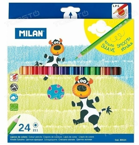 Купить Карандаши цветные Milan, шестигранные, толщина грифеля 2,9 мм, набор 24 цвета