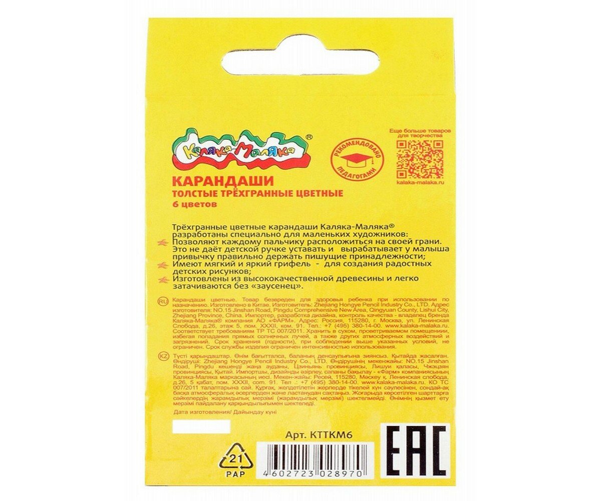 Ниже Вы можете прочитать отзывы на Набор цветных карандашей Каляка-маляка утолщенные укороченные 6 цв. трехгран. корп. дерев. карт. уп., ознакомится с подробными характеристиками, посмотреть интересные обзоры и фотографии на Набор цветных карандашей Каляка-маляка утолщенные укороченные 6 цв. трехгран. корп. дерев. карт. уп..