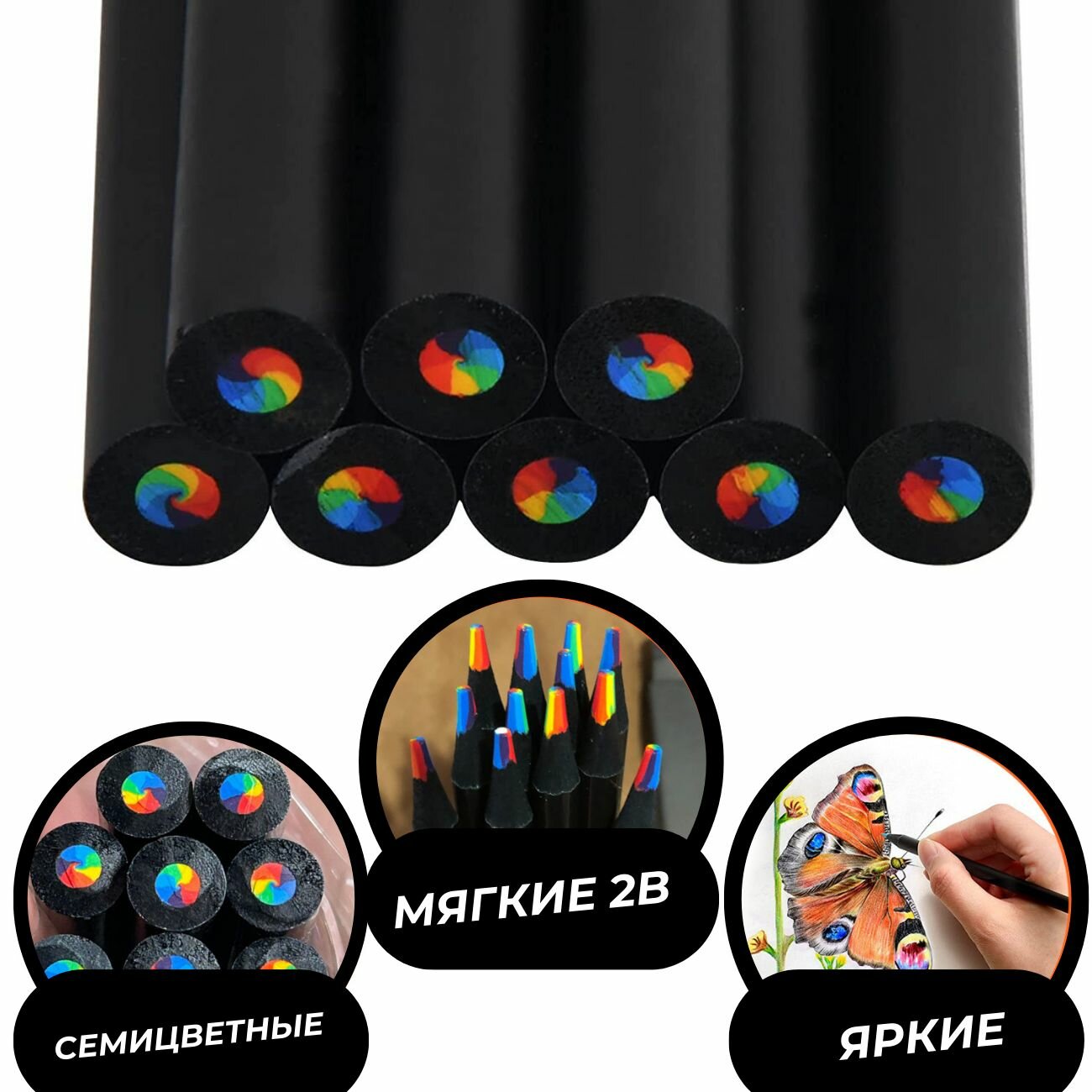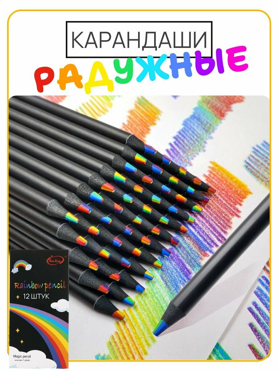 Набор семицветных радужных карандашей 12 штук интересное: