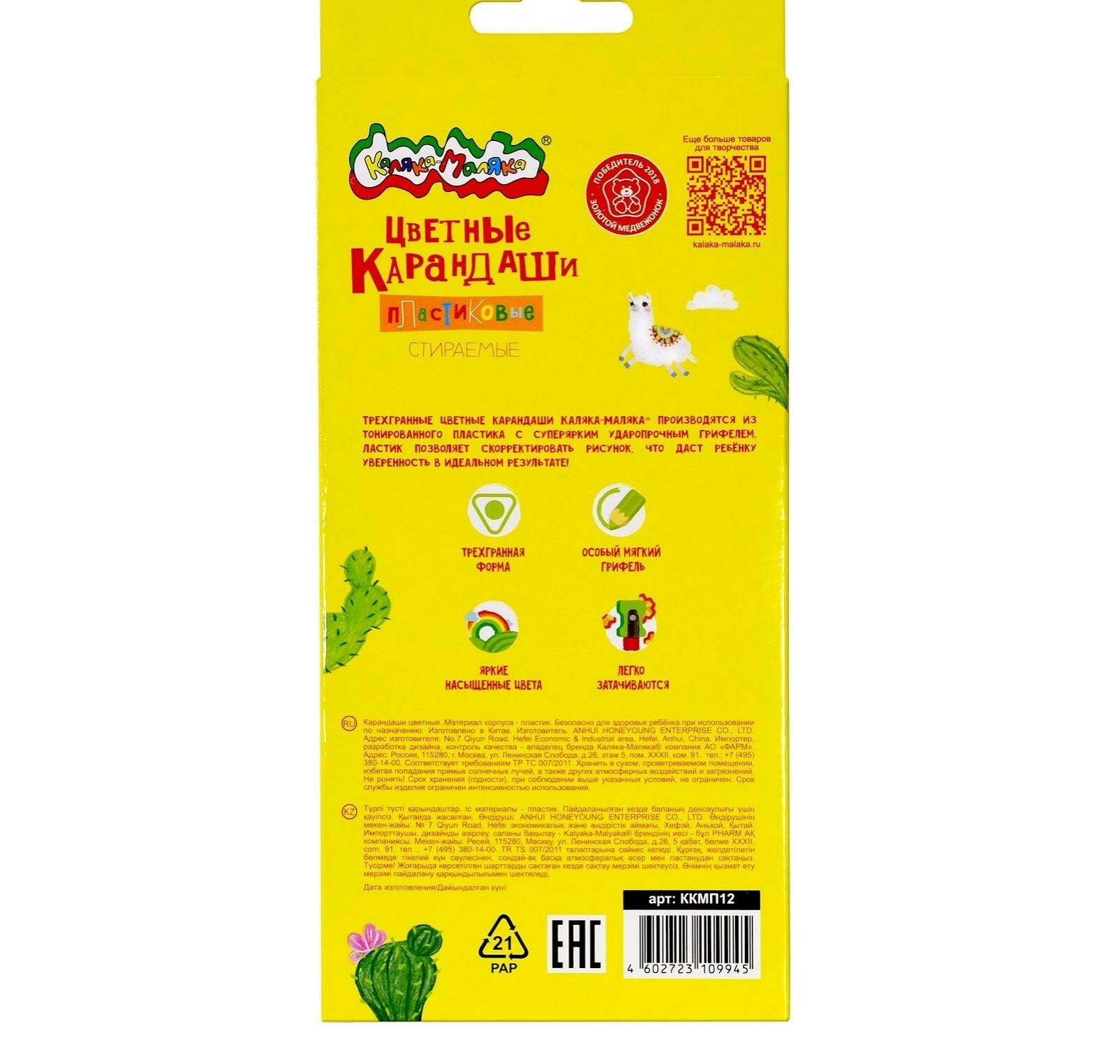 Купить Набор цветных карандашей Каляка-маляка с ластиком 12 цв. трехгран. корп. пластик карт. уп.