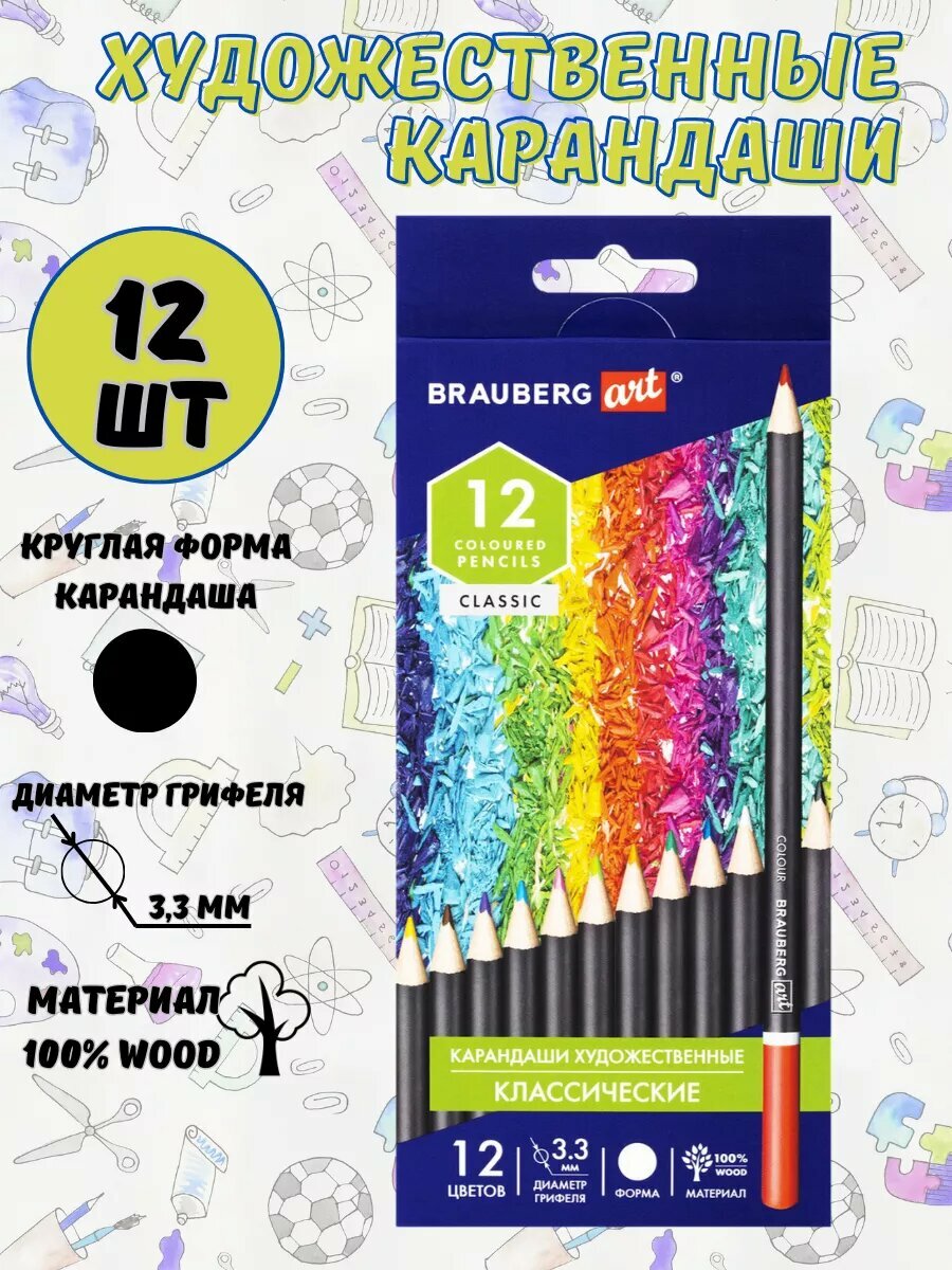 Цветные карандаши BRAUBERG ART CLASSIC, художественные, для рисования, 12 цветов интересное: